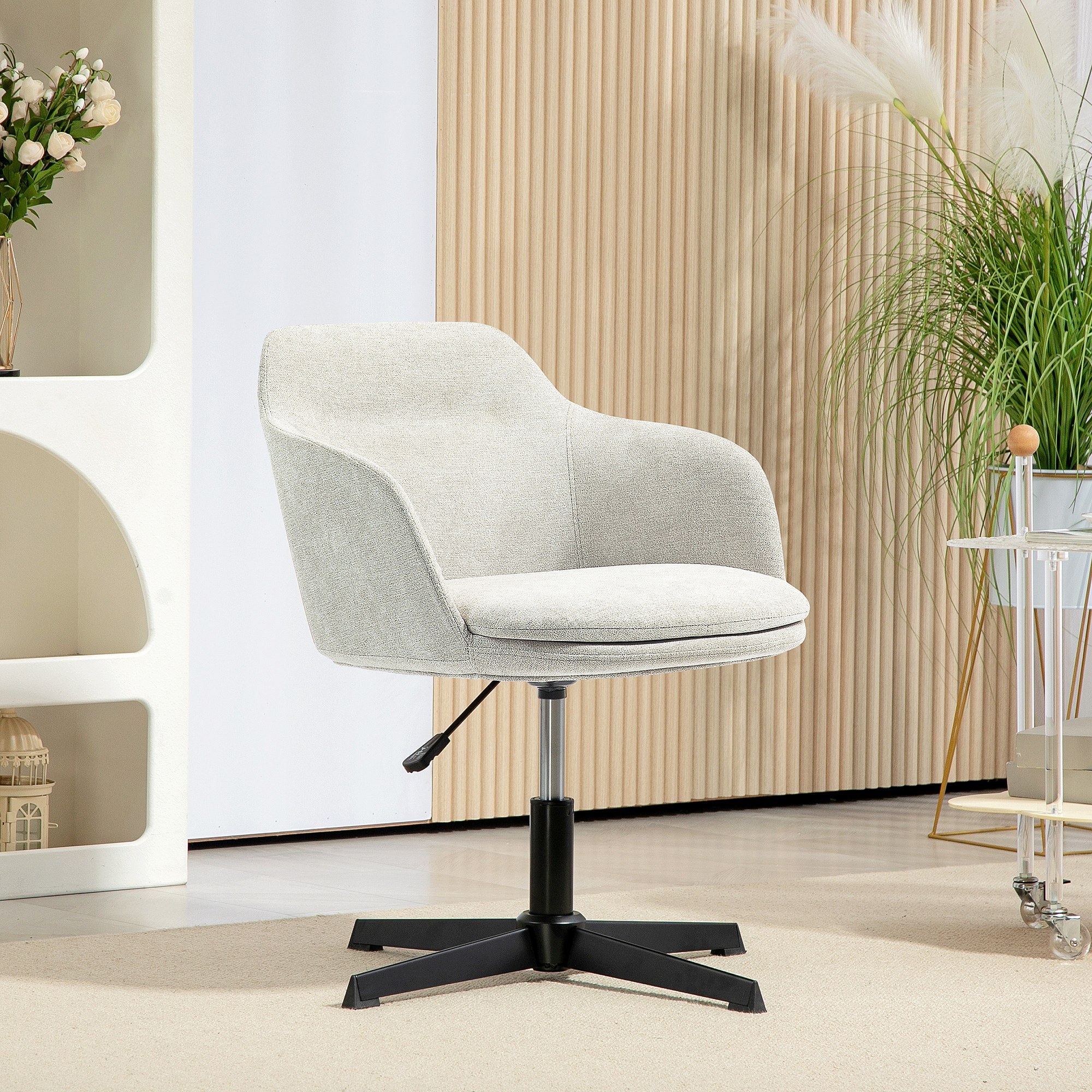 Chaise de bureau enveloppante design - piètement acier noir tissu toucher lin beige