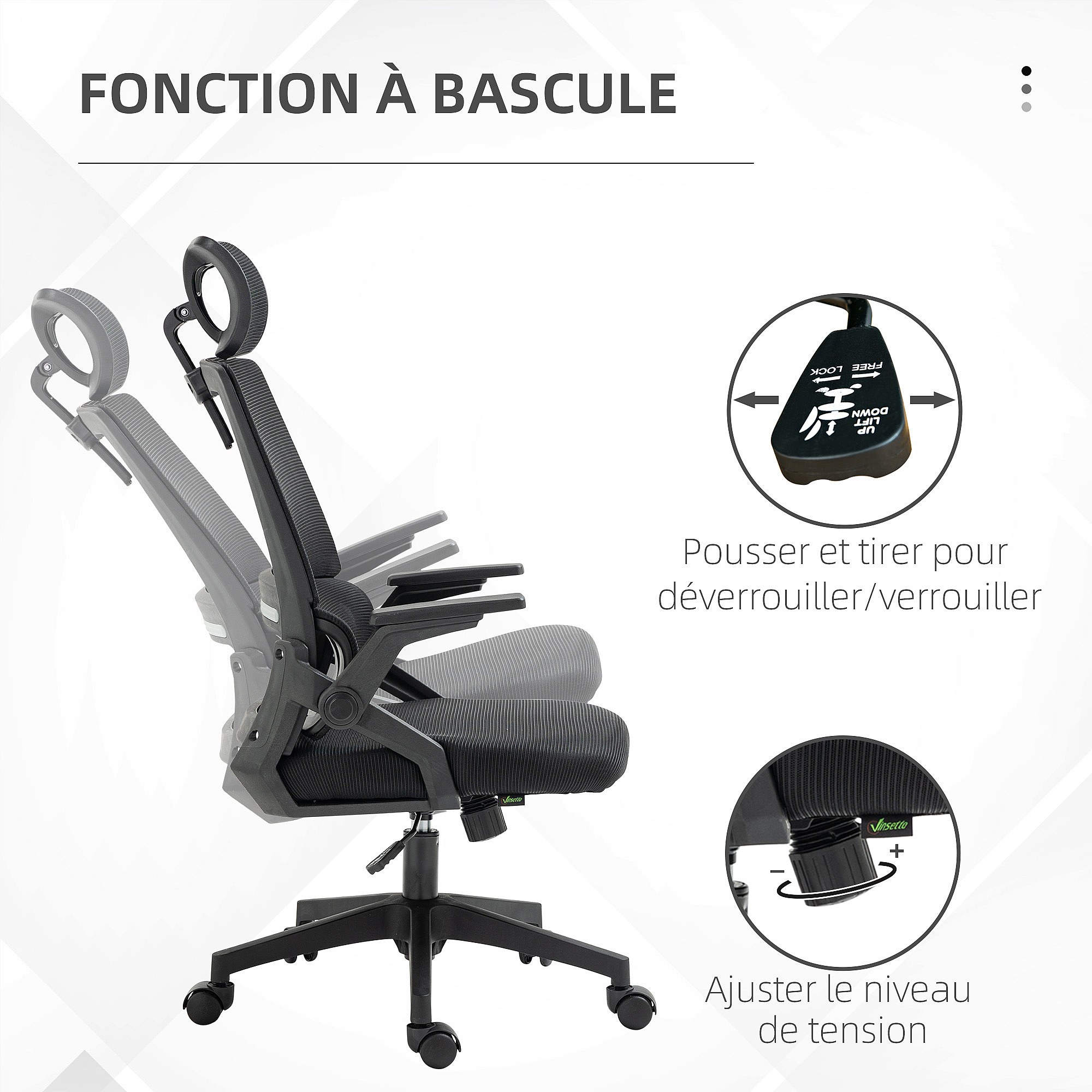 Chaise de bureau ergonomique réglable inclinable pivotante maille polyester noir