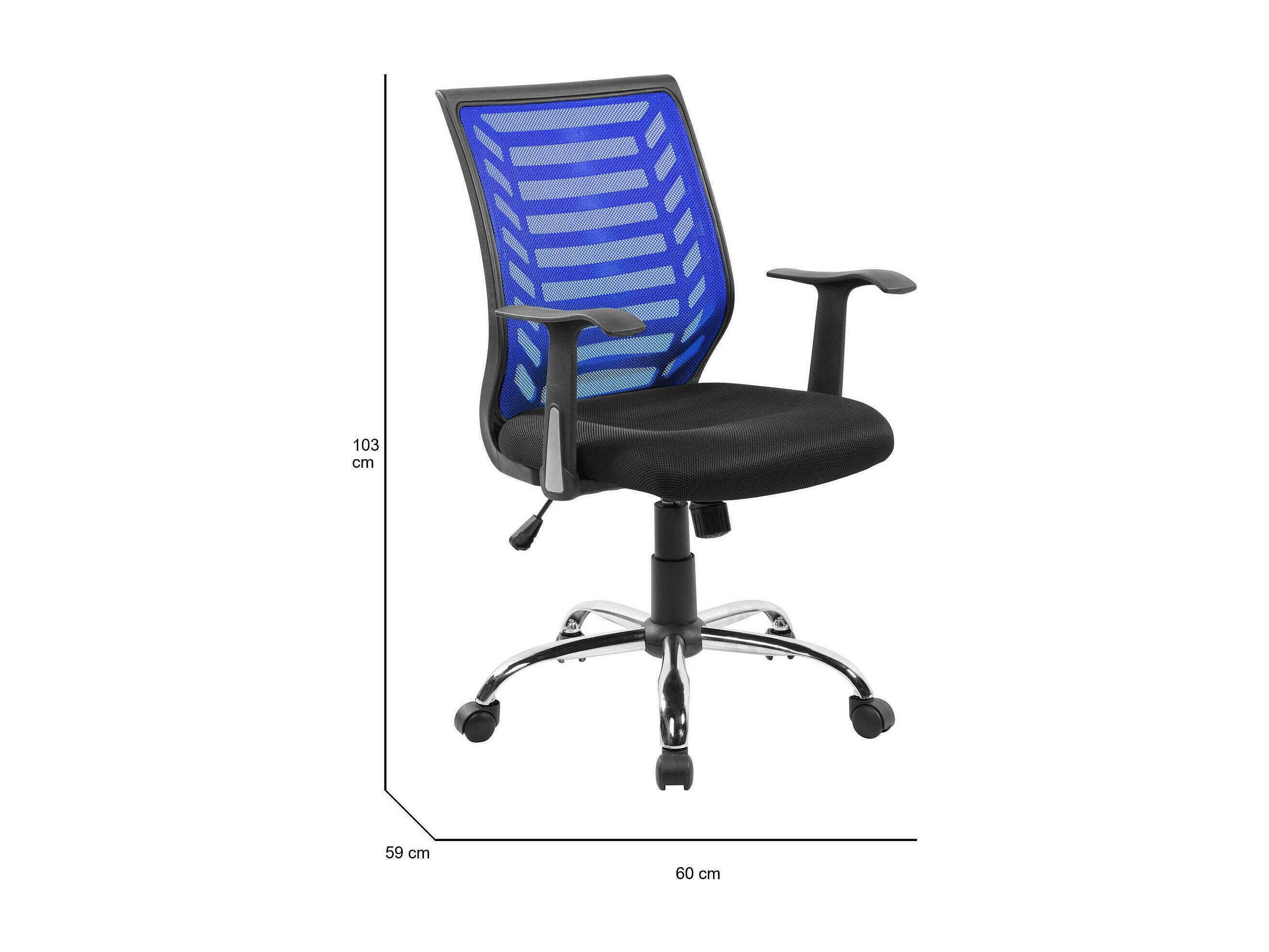 Chaise de bureau Harbour, Chaise de travail en maille avec accoudoirs, Siège de bureau ergonomique, 59x60h93/103 cm, Noir et Bleu