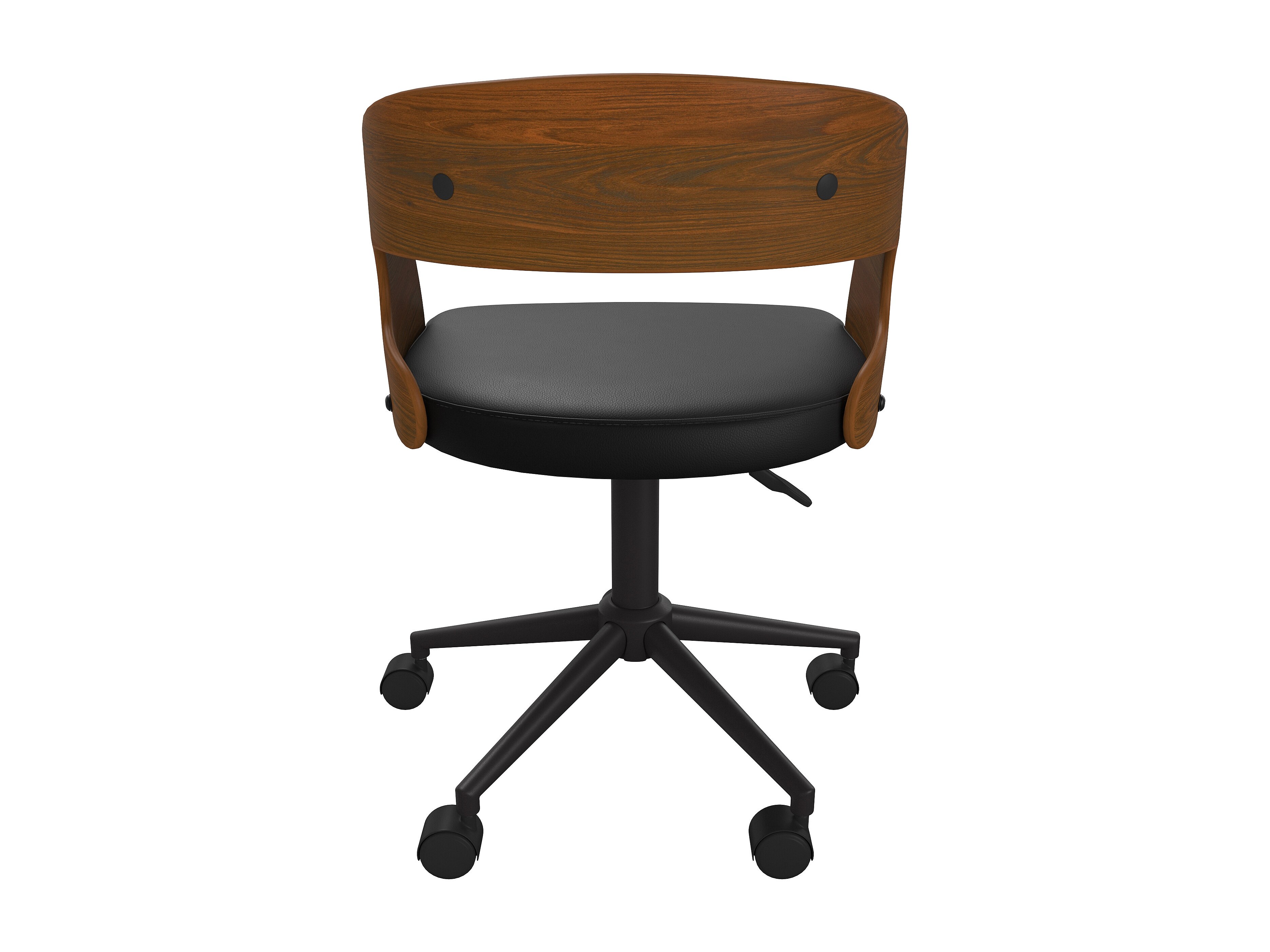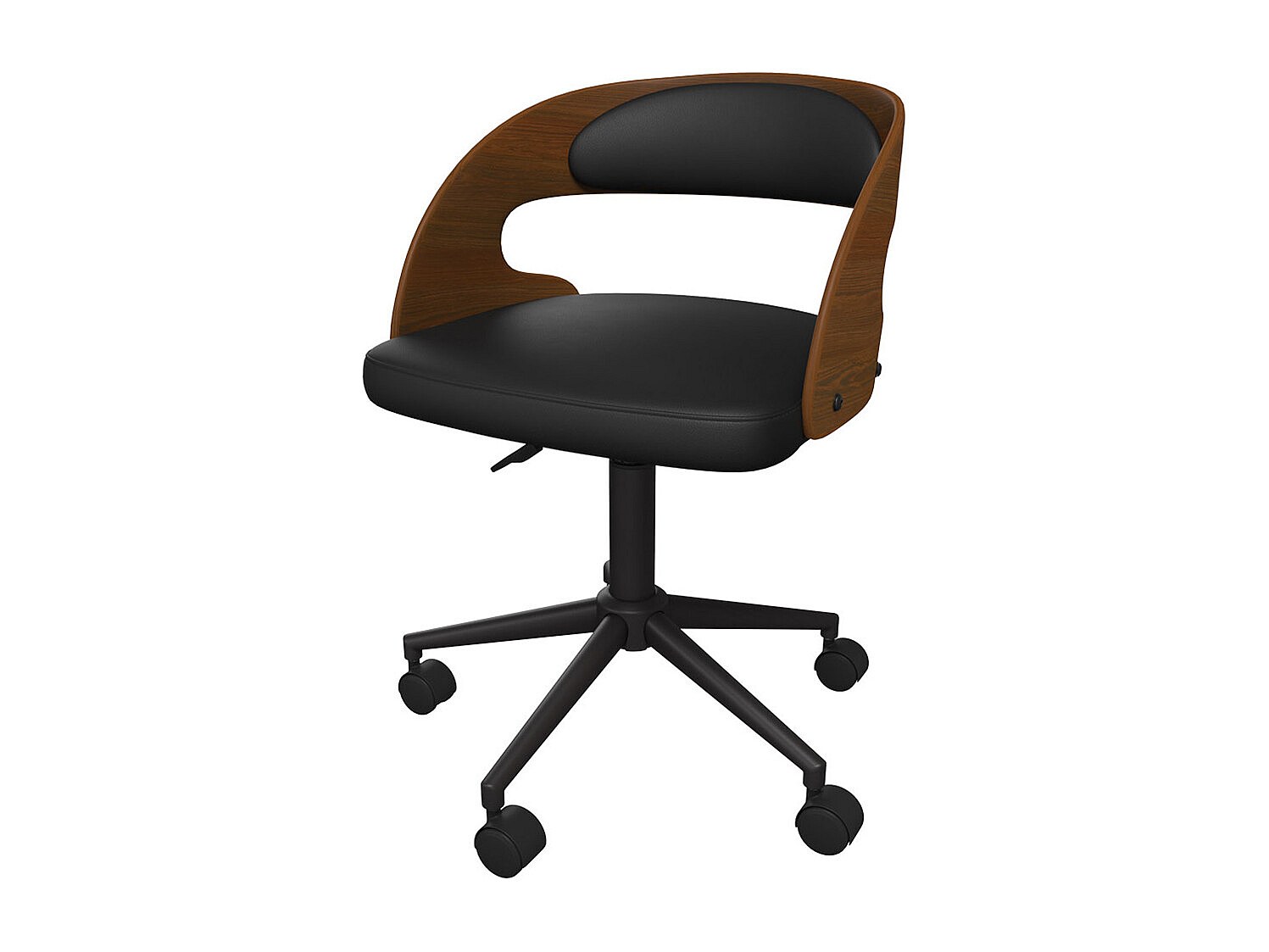 Chaise de bureau pivotante sur roulettes en bois et PU noir - Basile