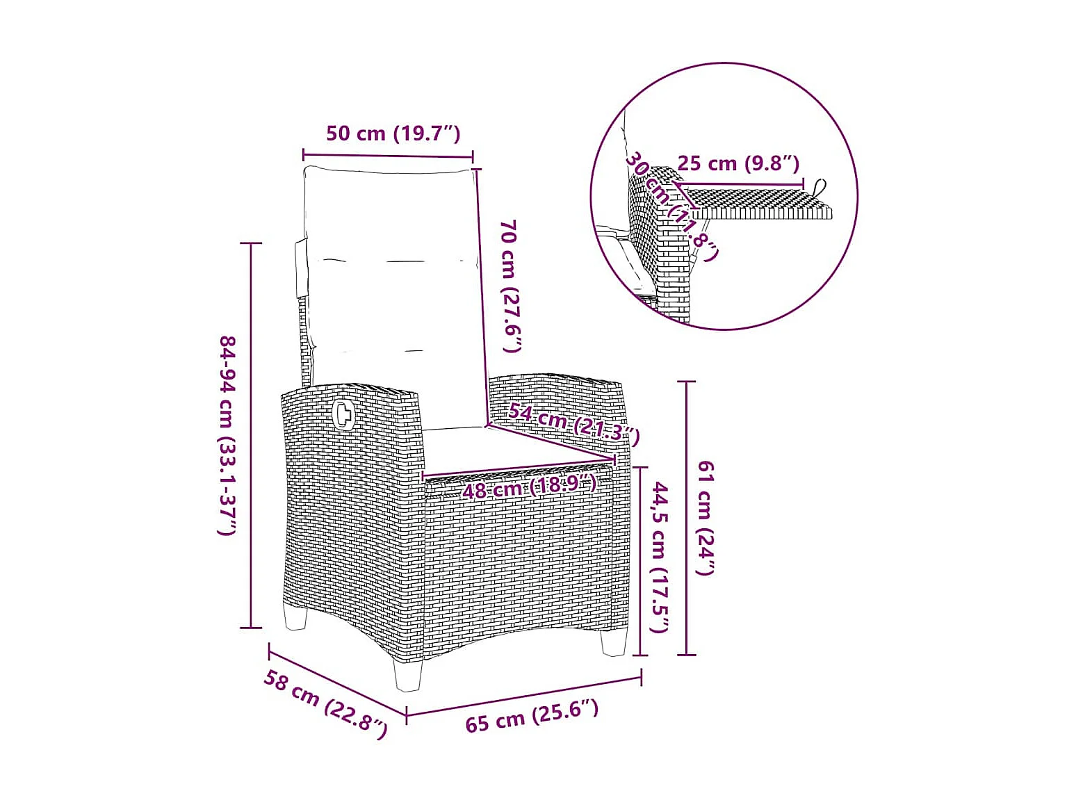 Chaise de jardin inclinable avec table d'appoint gris polyrotin