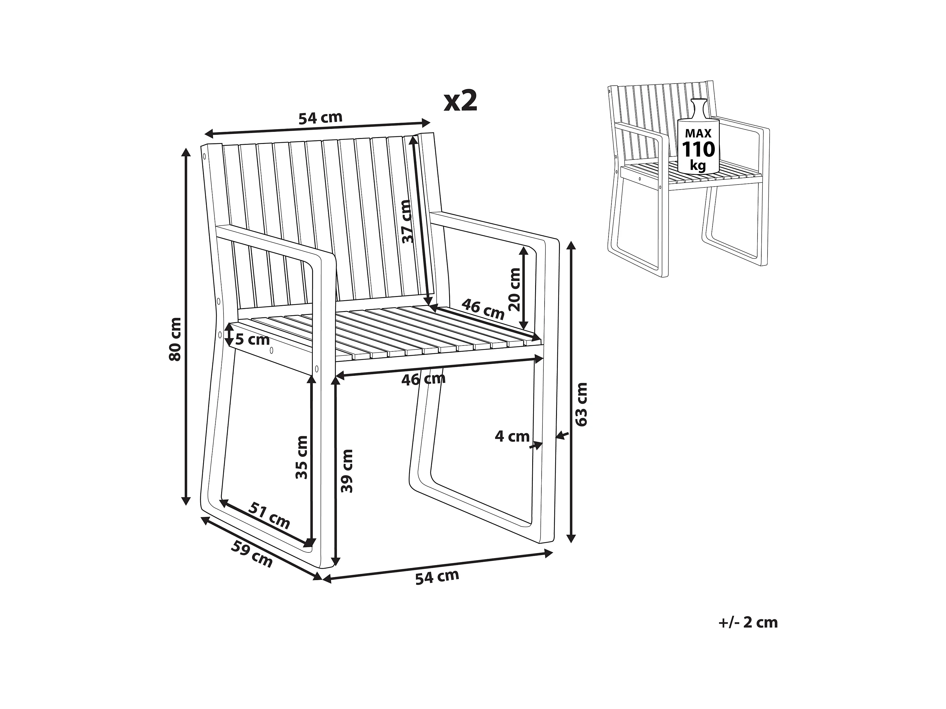 Lot de 2 chaises de jardin SASSARI II Bois d'acacia certifié Marron clair