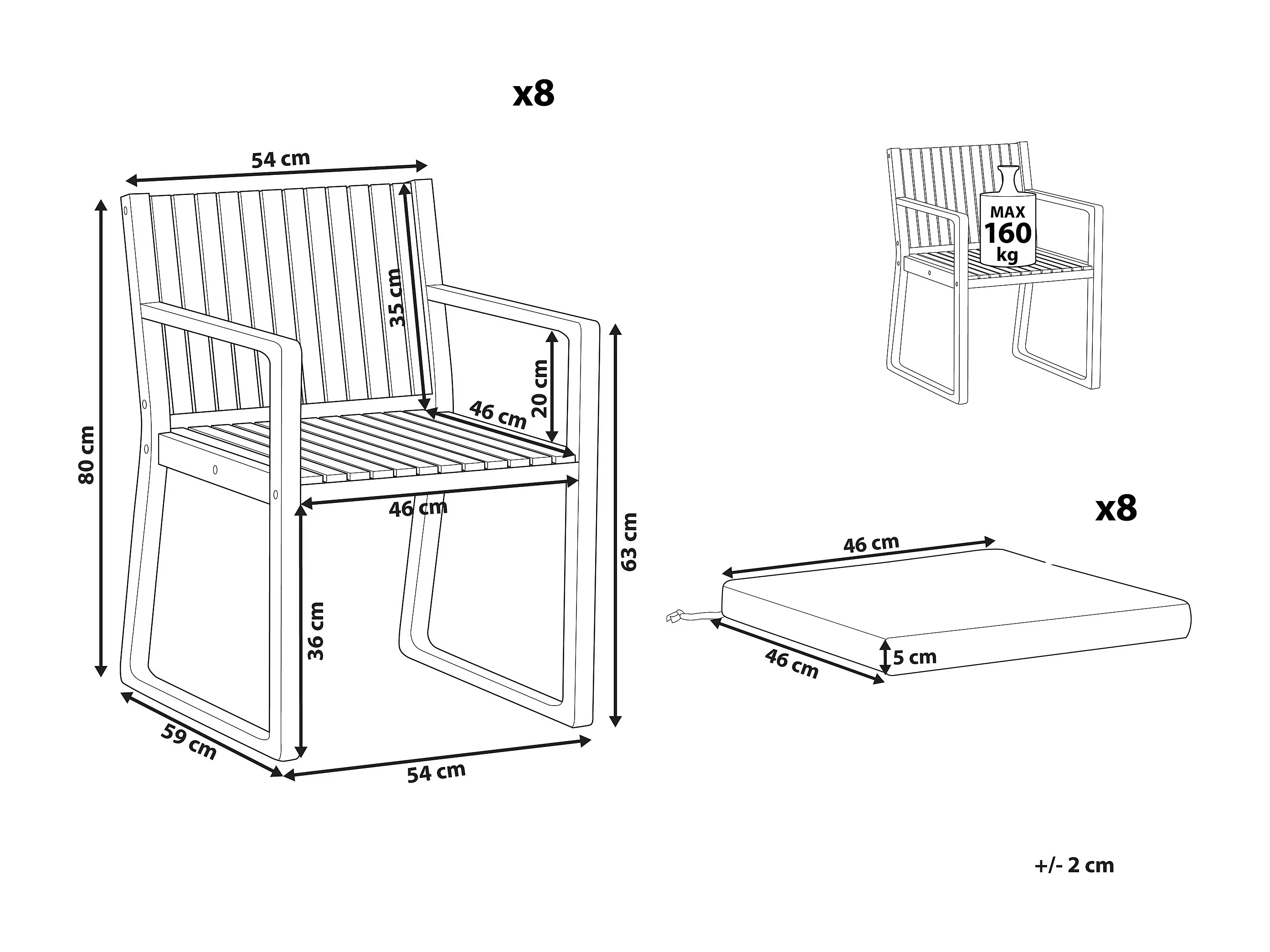 Lot de 8 chaises de jardin avec coussins SASSARI Acacia Gris