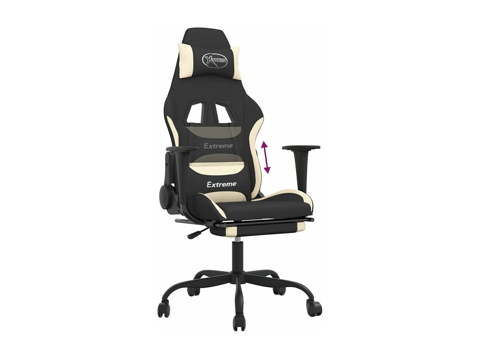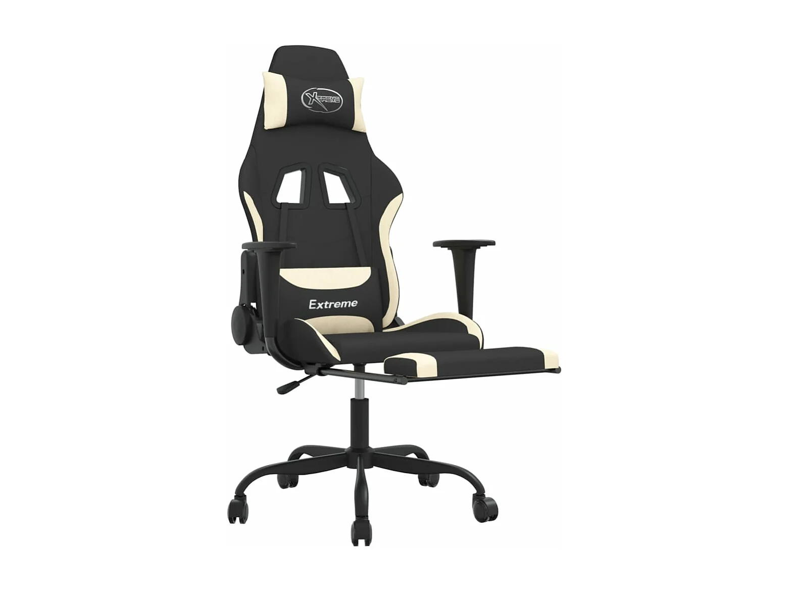 Chaise de jeu avec repose-pied Noir et crème Tissu