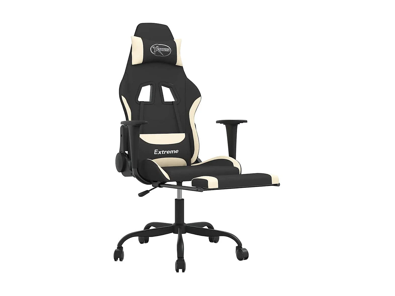 Chaise de jeu de massage avec repose-pied Noir et crème Tissu