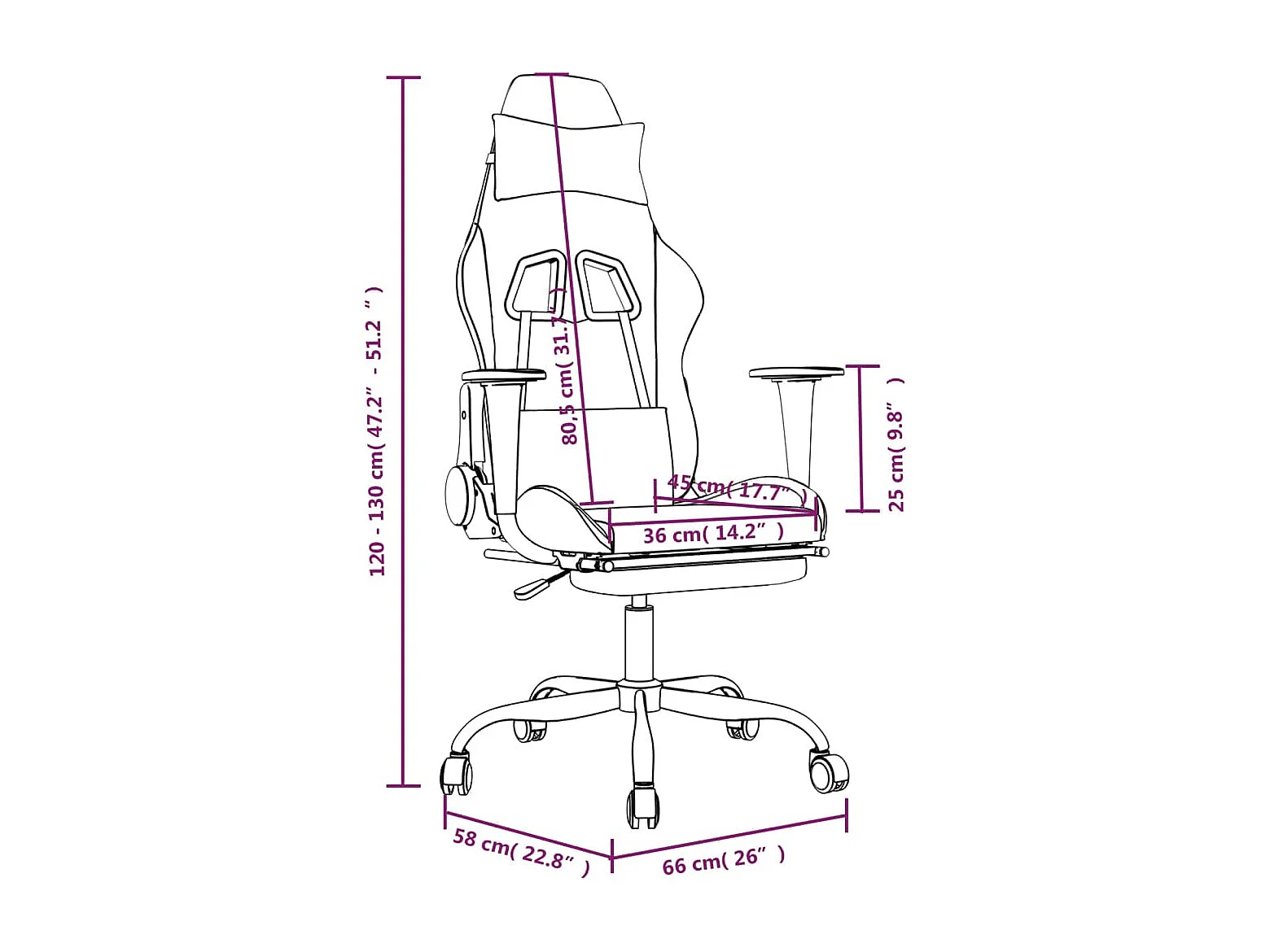 Chaise de jeu de massage avec repose-pied Noir et blanc Tissu