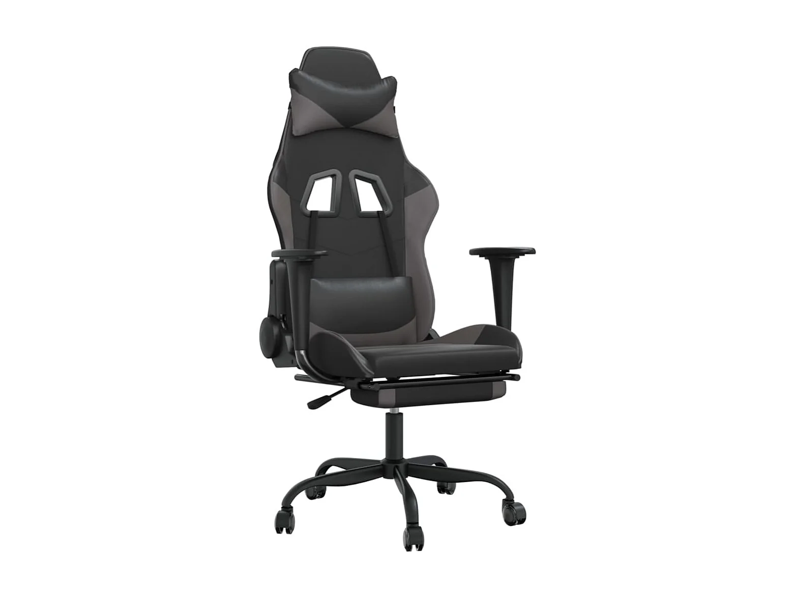 Chaise de jeu de massage avec repose-pied Noir&Gris Similicuir