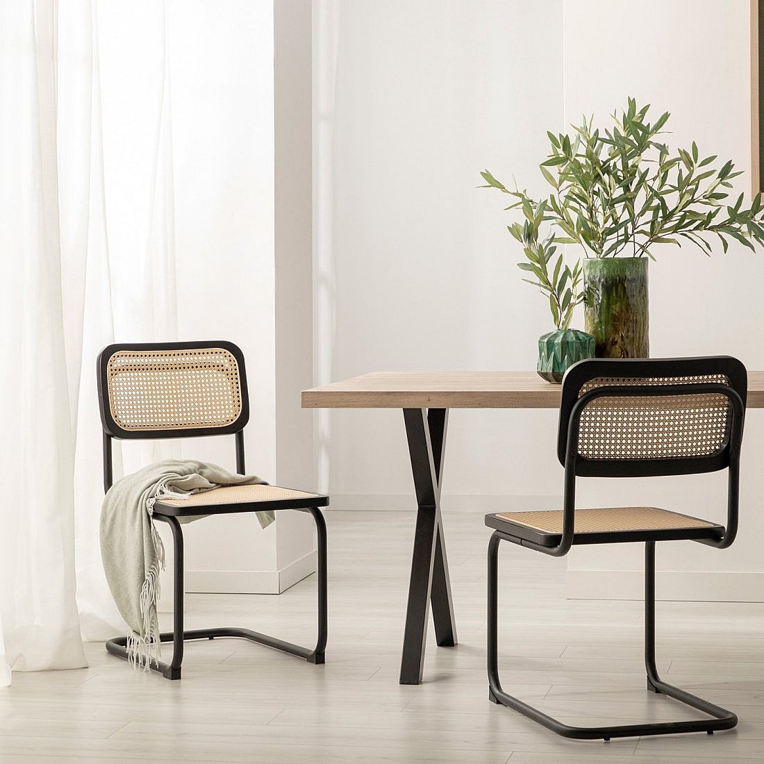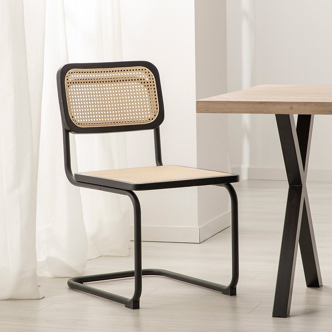 Chaise de salle à manger en bois noir-naturel 45x84 cm-Keila