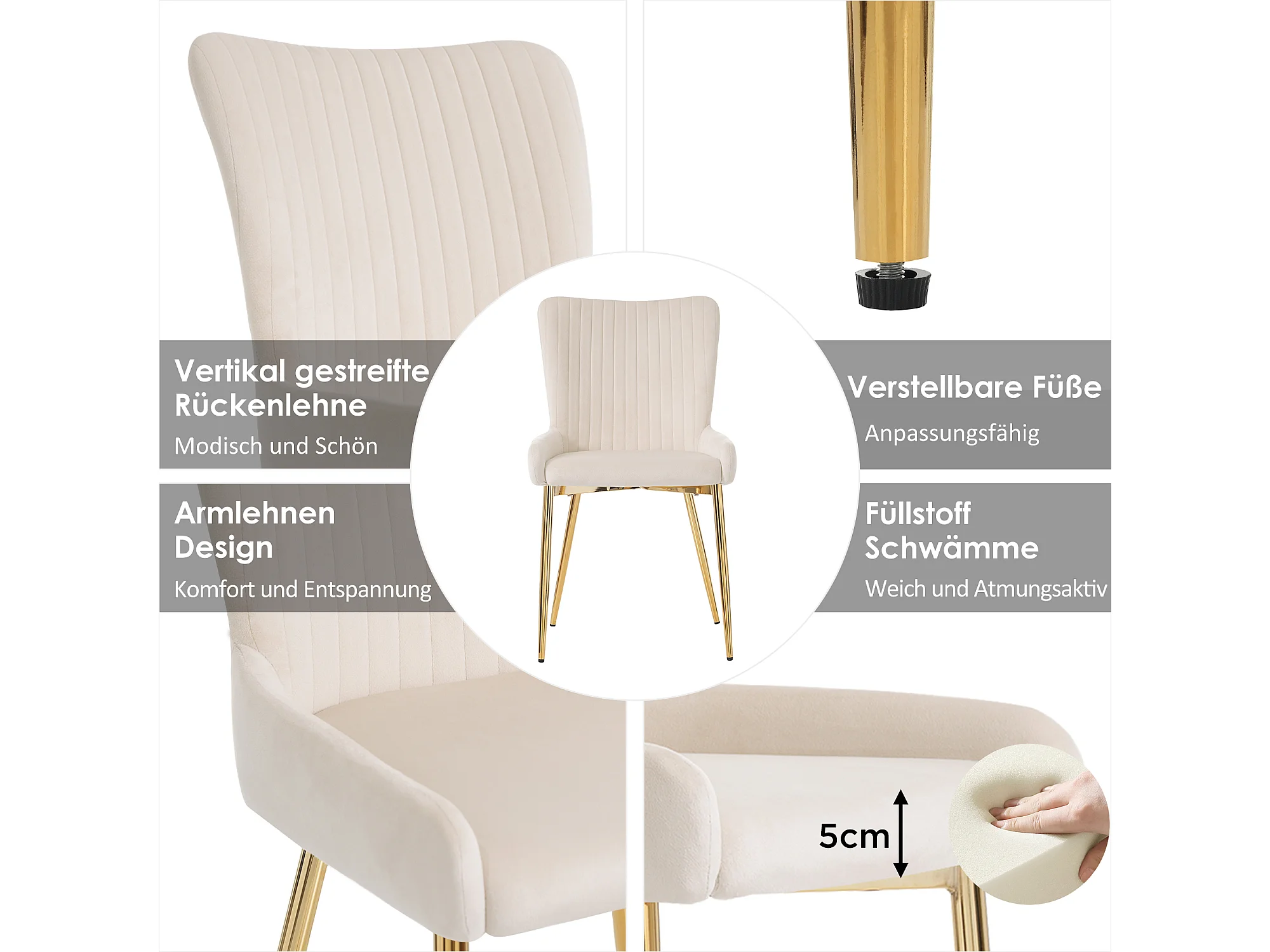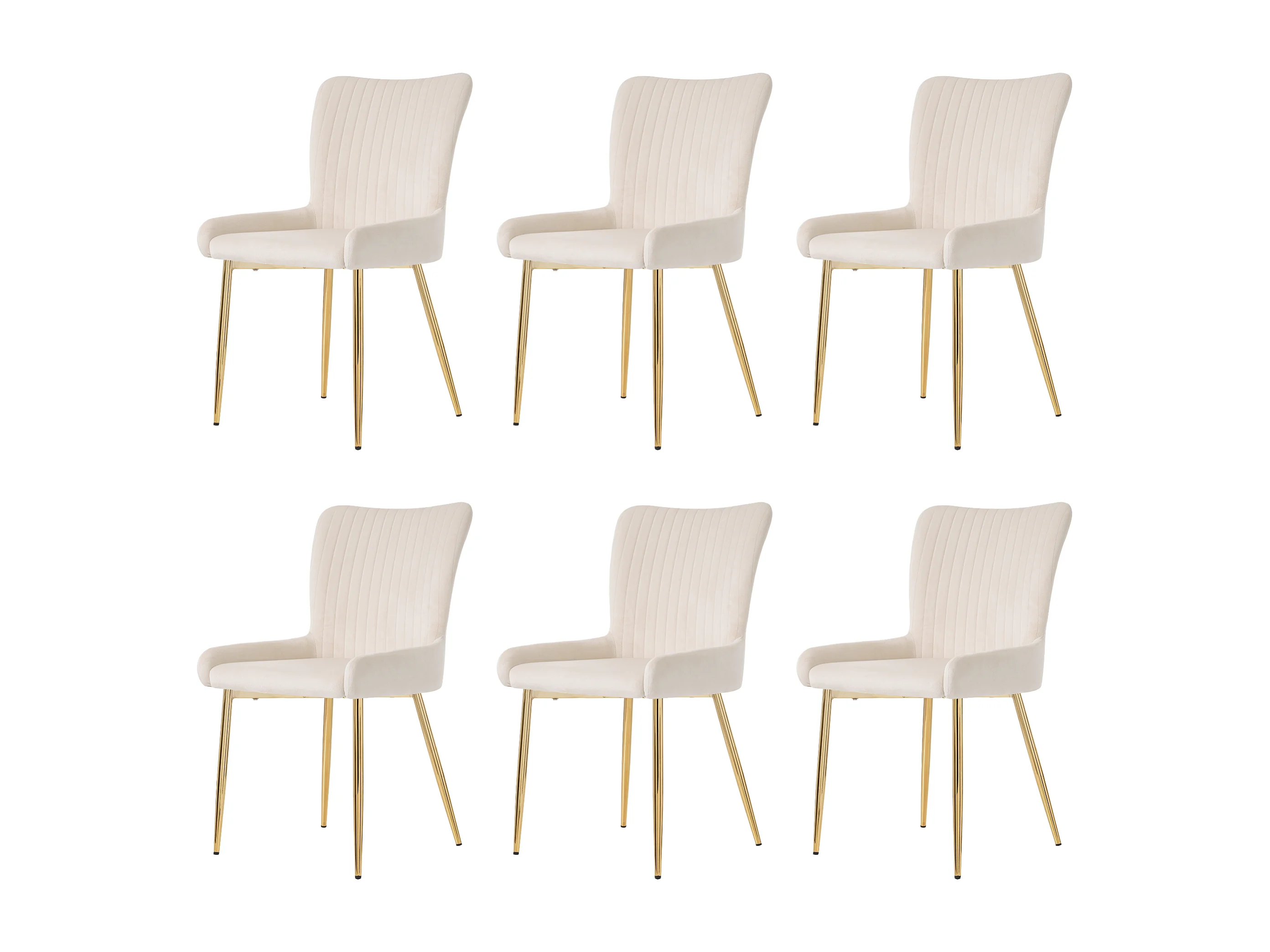 Chaise de salle à manger en velours beige, 6 pièces, avec pieds métalliques dorés, soutien lombaire (74x58x48 cm)