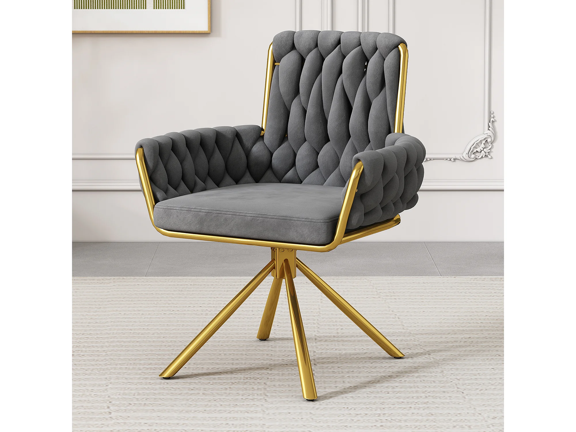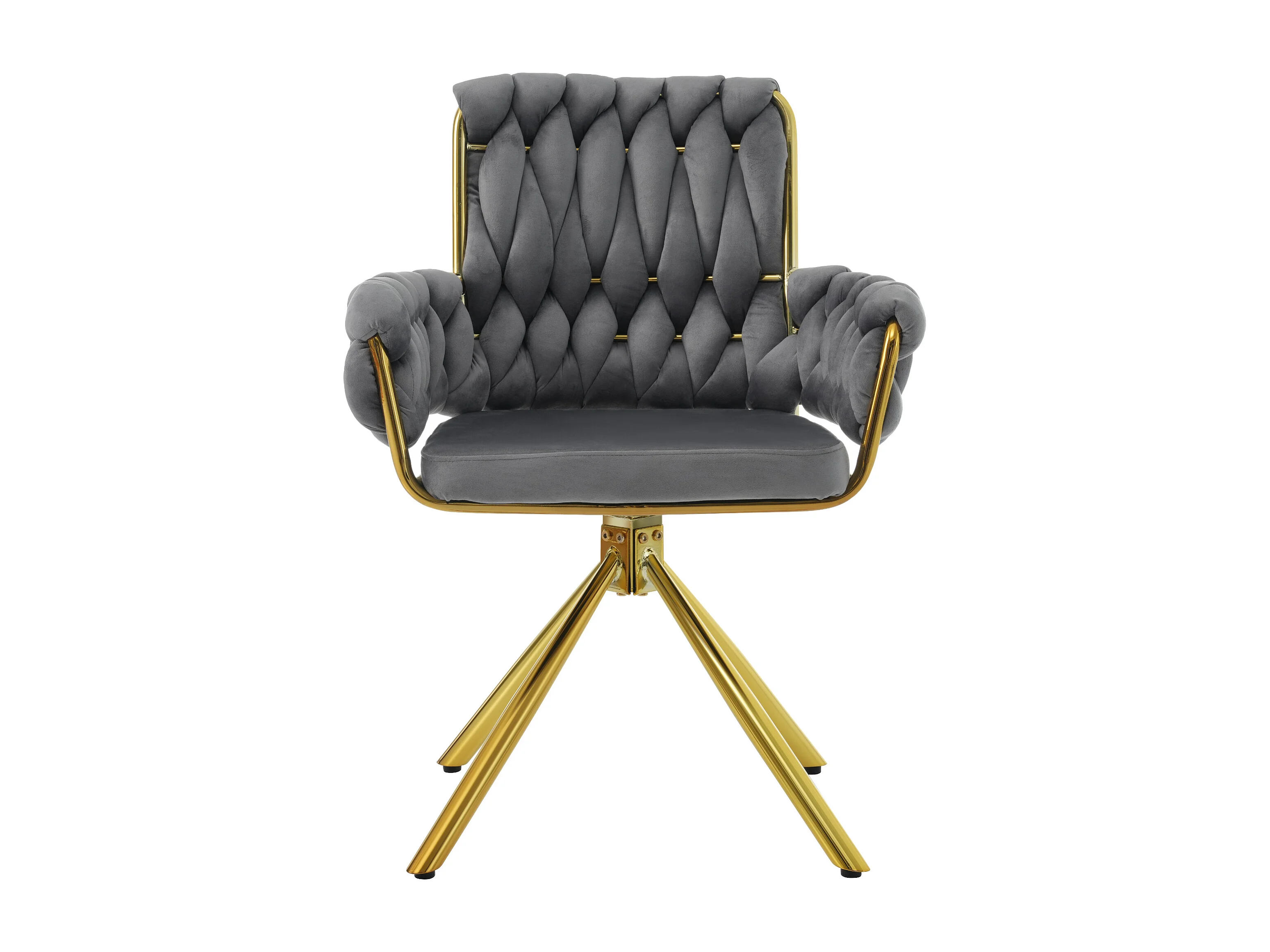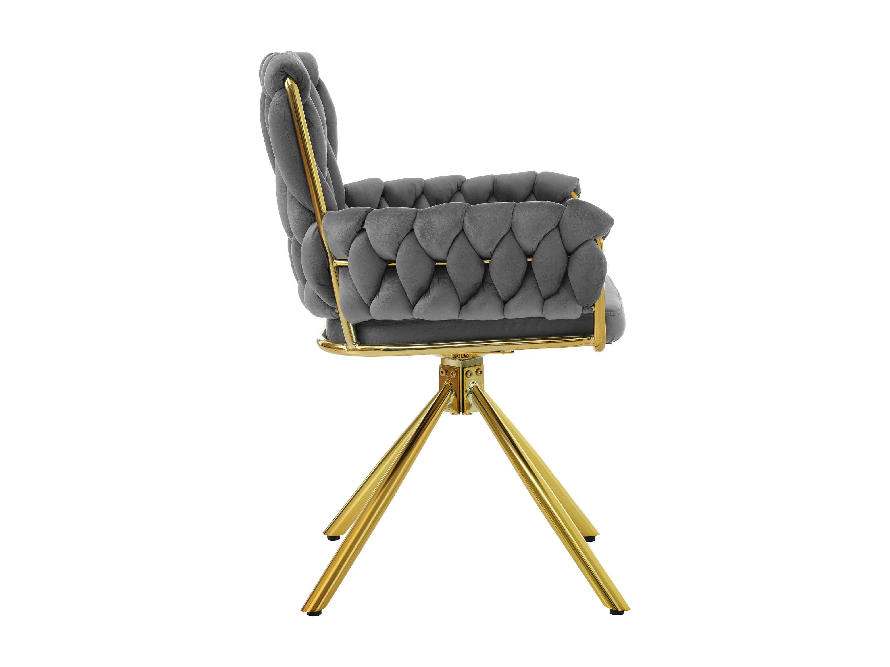 Chaise de salle à manger en velours, fauteuil tournant luxe, chaise de loisirs avec accoudoirs et pieds métalliques, gris