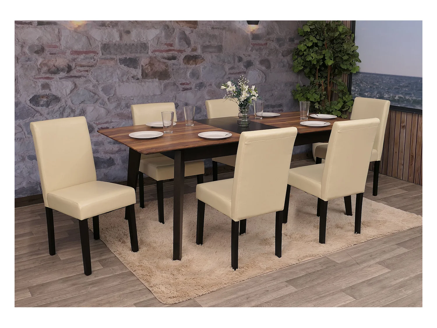 Chaise de salle à manger Littau (lot de 6), cuir reconstitué crème, pieds foncés