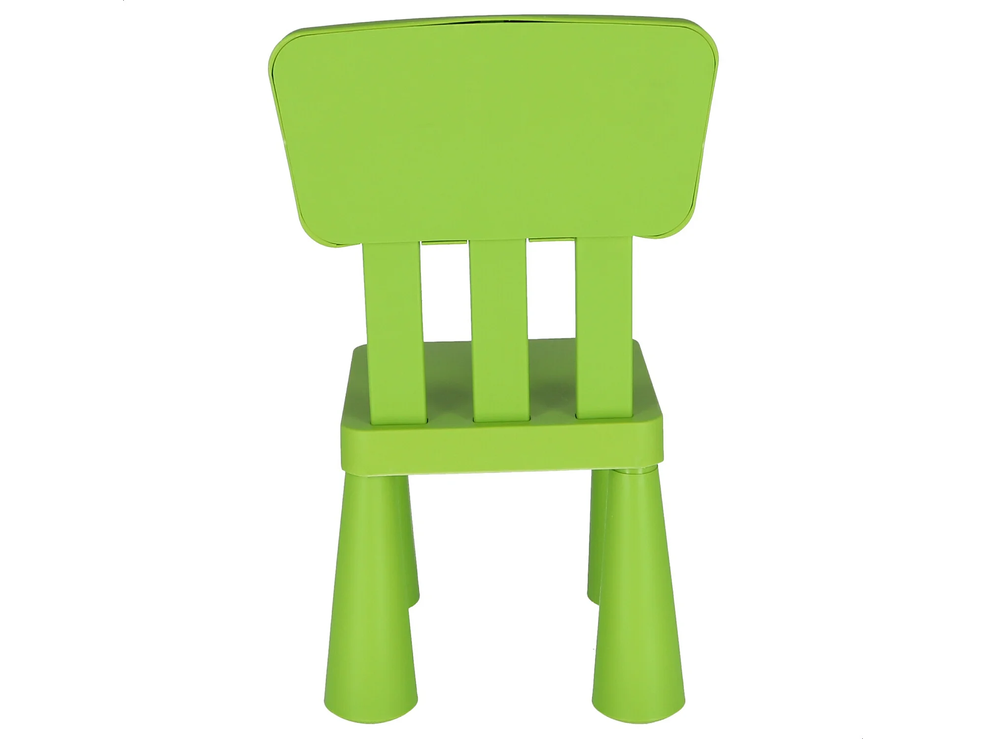 Chaise d'enfant verte, en plastique solide et résistant, L:38 cm x F:35 cm x H:67 cm