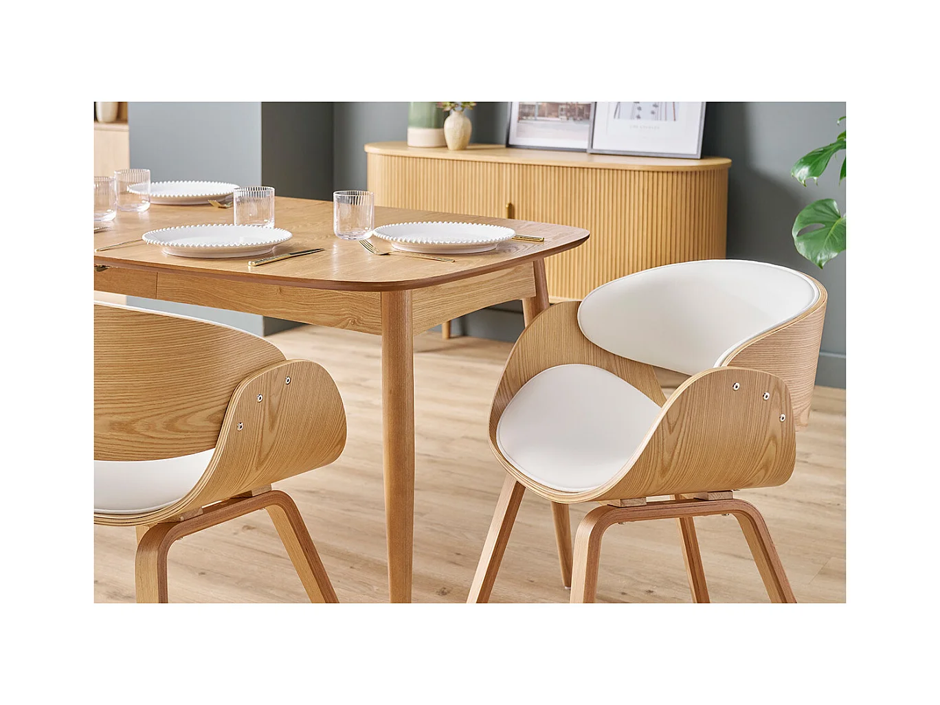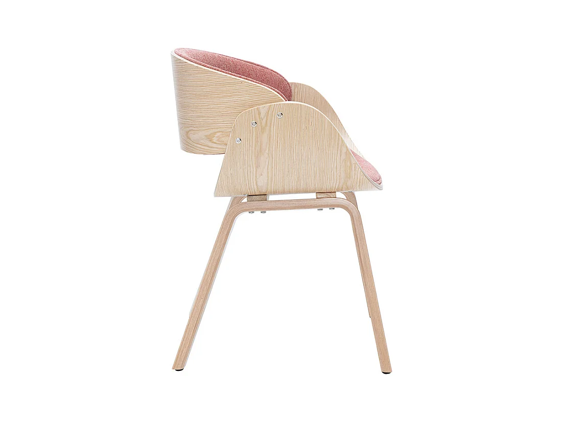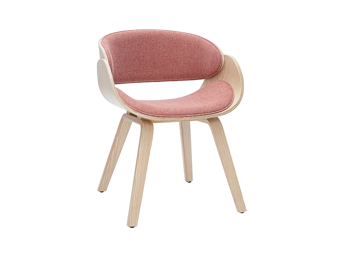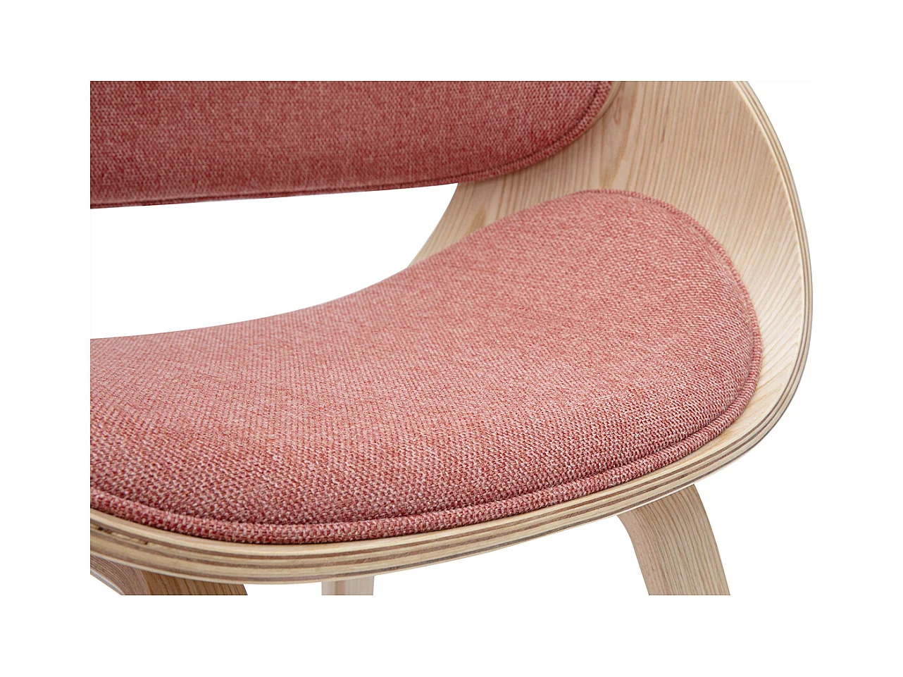 Chaise design en tissu effet velours texturé terracotta et bois clair BENT