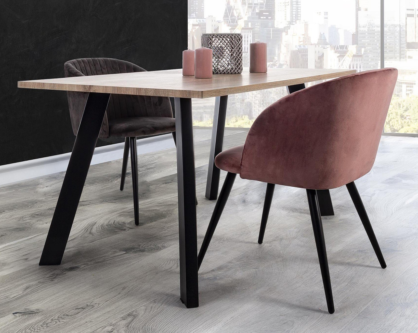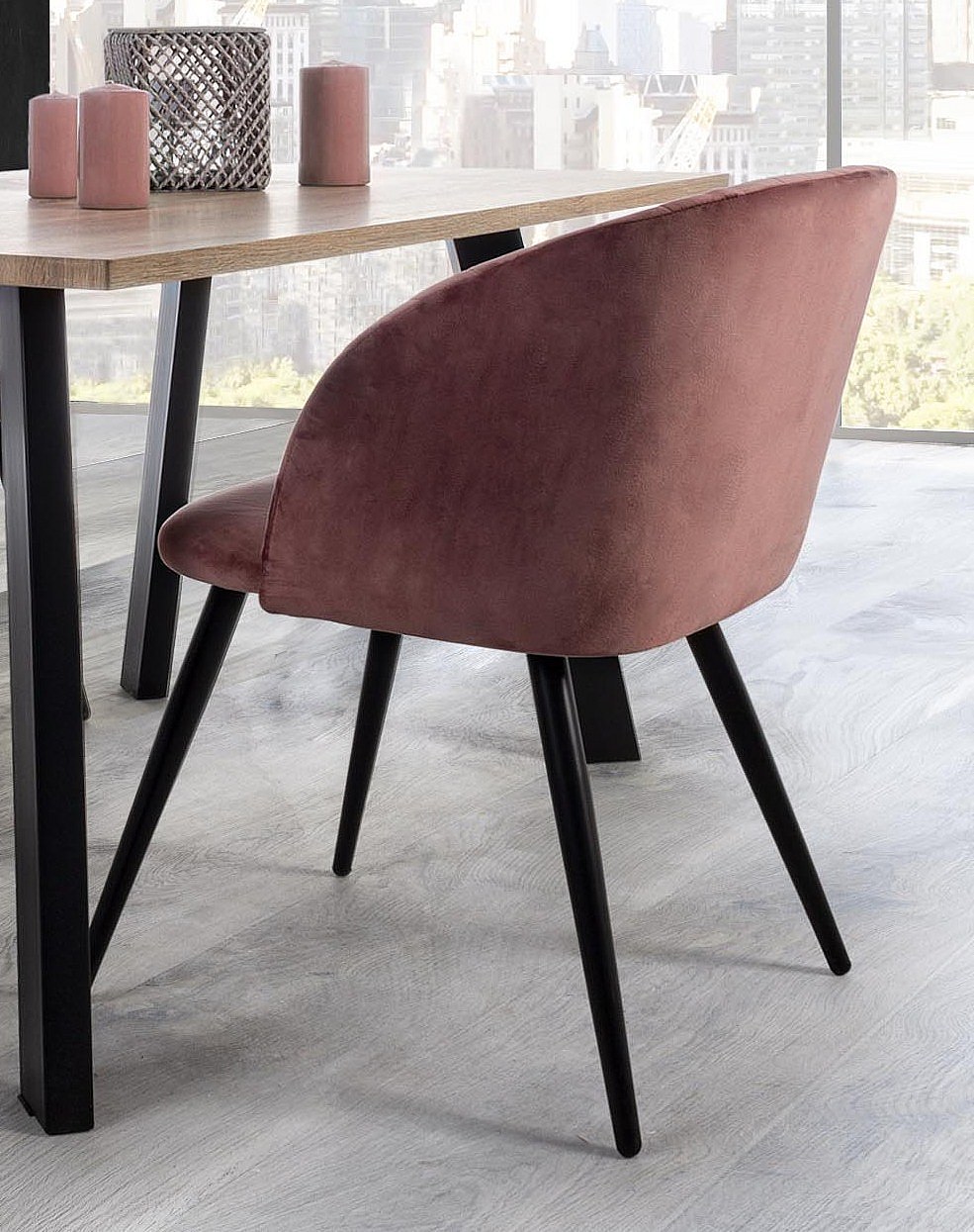 Lot de 2 chaises Quentin en velours rembourré - Confort moderne-Couleur Rose poudré