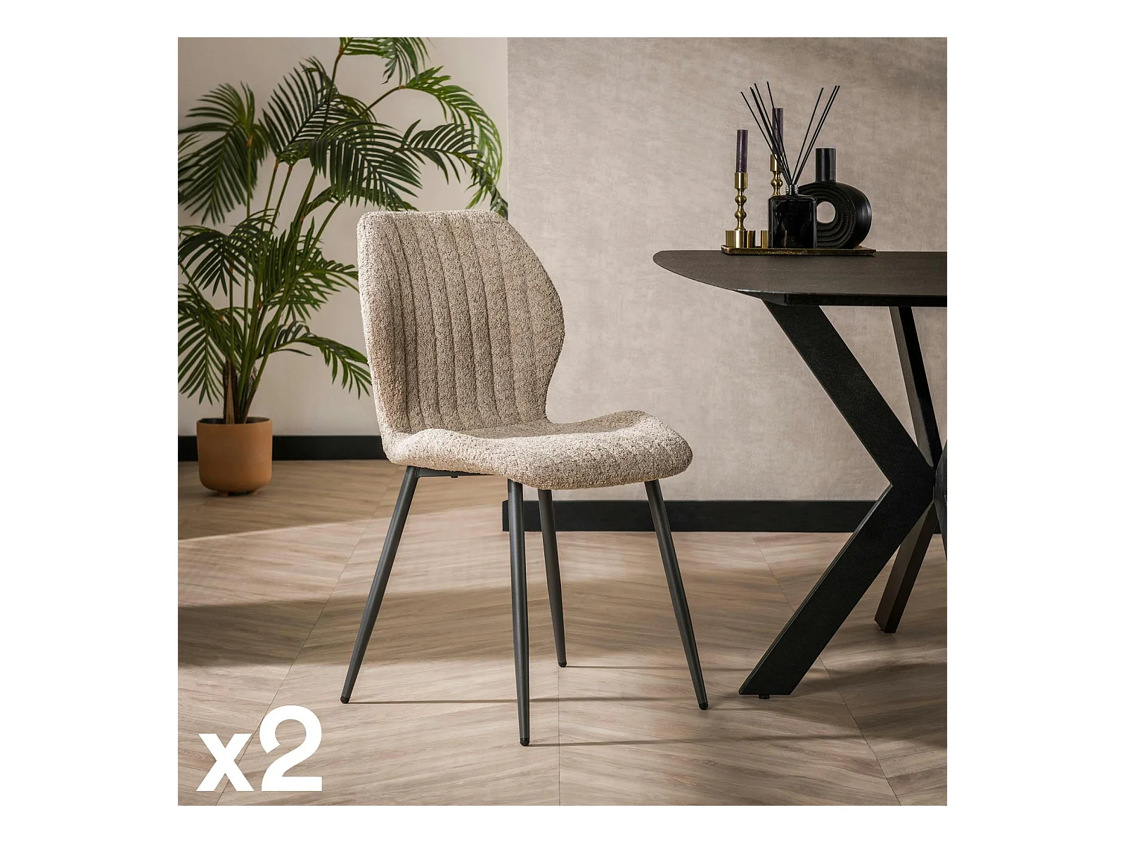 Chaise en bouclette sable à rayures (lot de 2) GALWAY