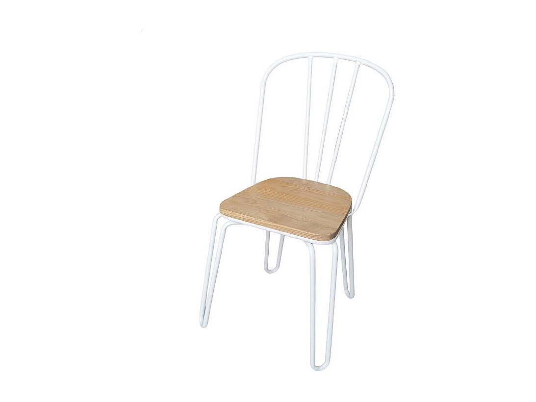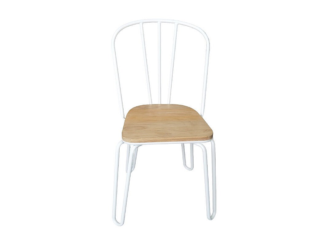 Chaise en métal blanc mat style industriel et assise en bois clair – Pieds en épingle