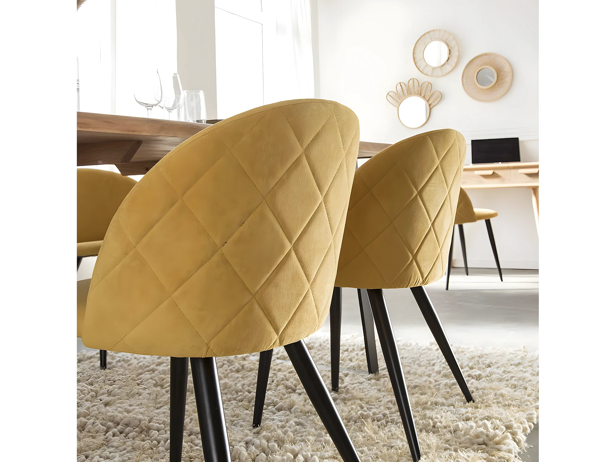 Lot 2 chaises en velours jaune rembourré et pieds métal - NANY 2