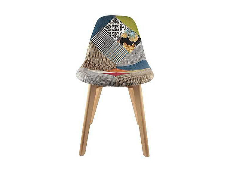 Chaise Scandinave en Tissu Patchwork - Pieds Eiffel - Multicolore