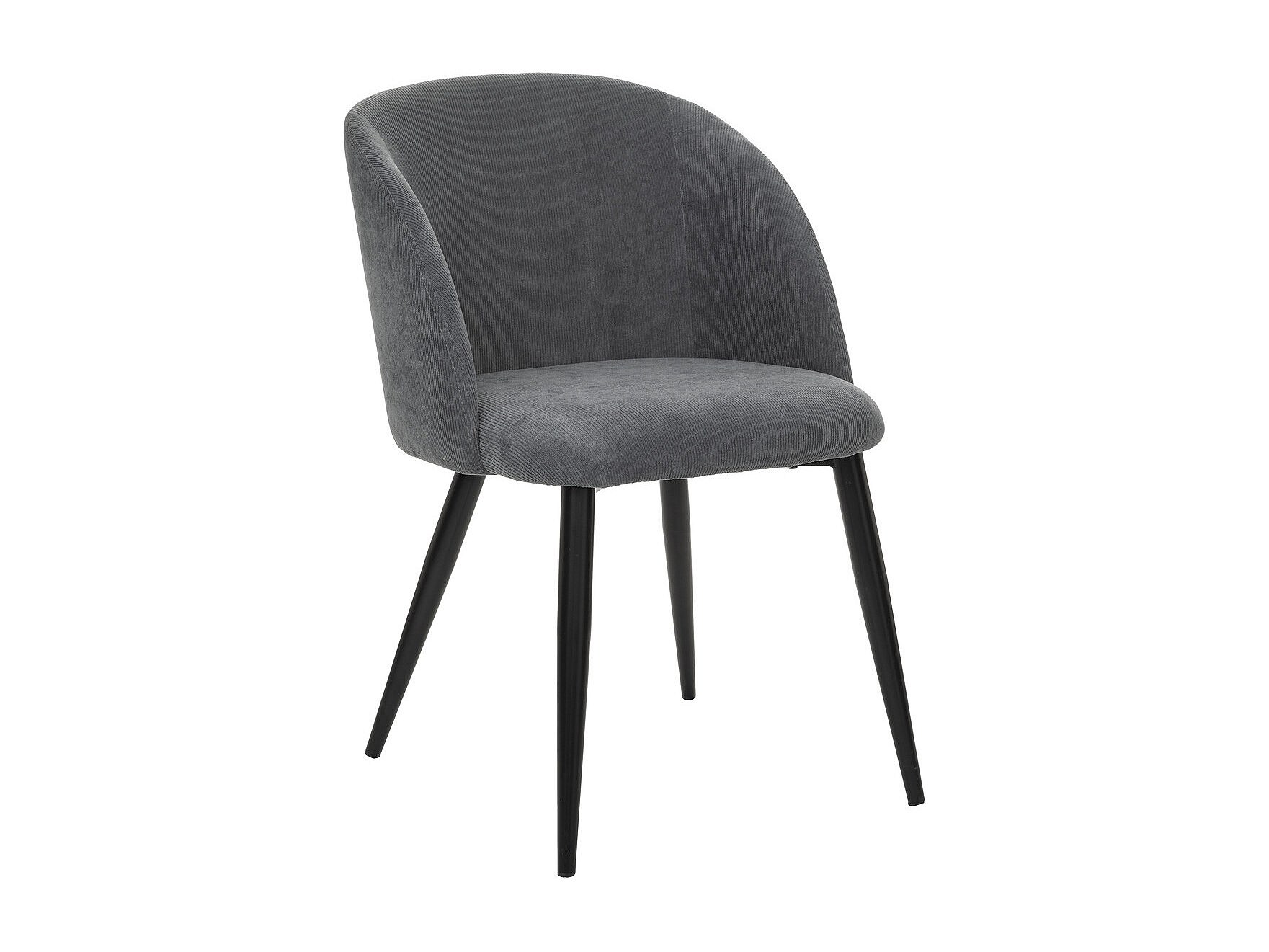 Chaise Fauteuil de table en Velours côtelé Gris galet et pieds en métal Noir