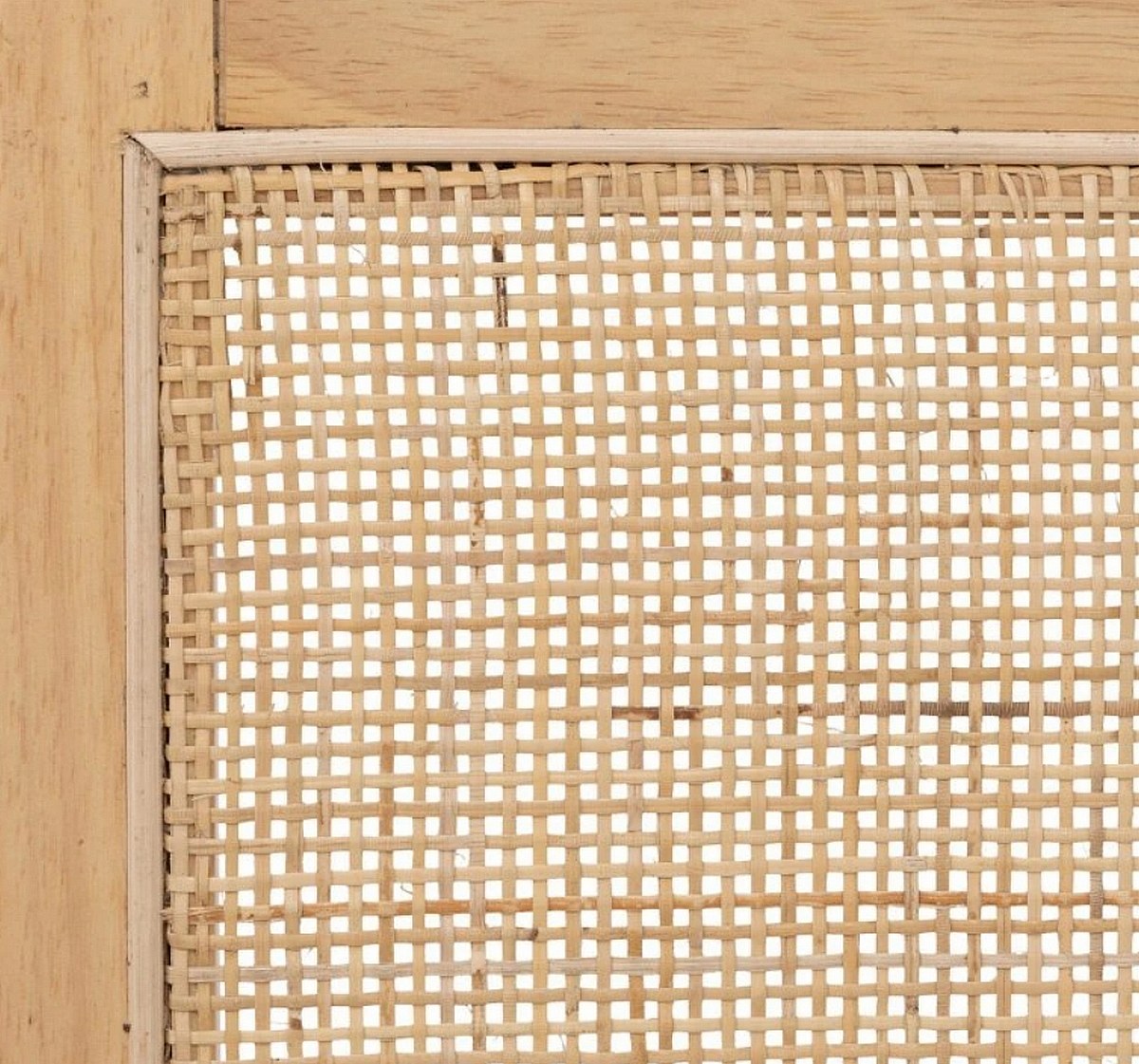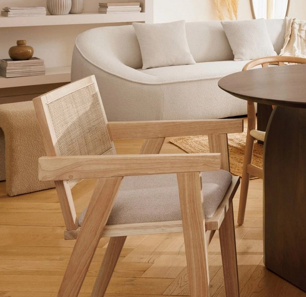Chaise fauteuil en bois naturel avec assise rembourrée et dossier en cannage - Longueur 50 x Profondeur 50,5 x Hauteur 82 cm
