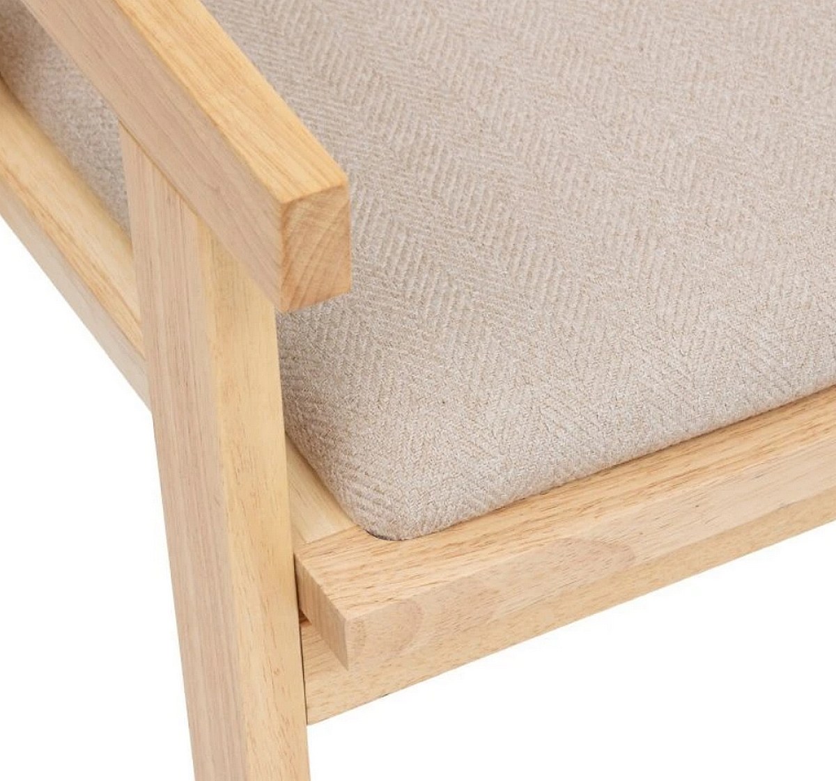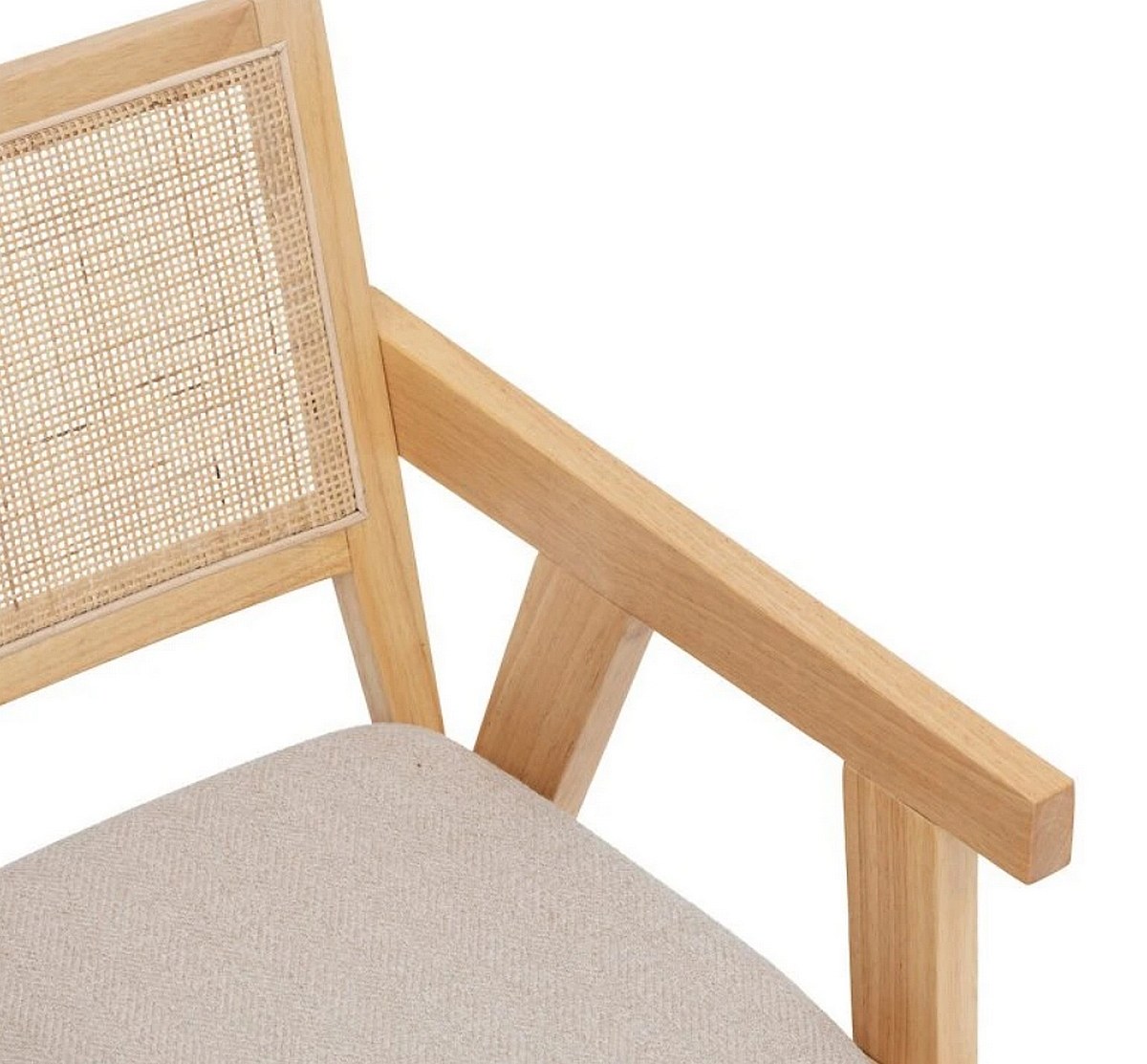 Fauteuil de Salon avec Accoudoirs - Fauteuil de Design Boho Bali - Bois et Lin - Recia Beige