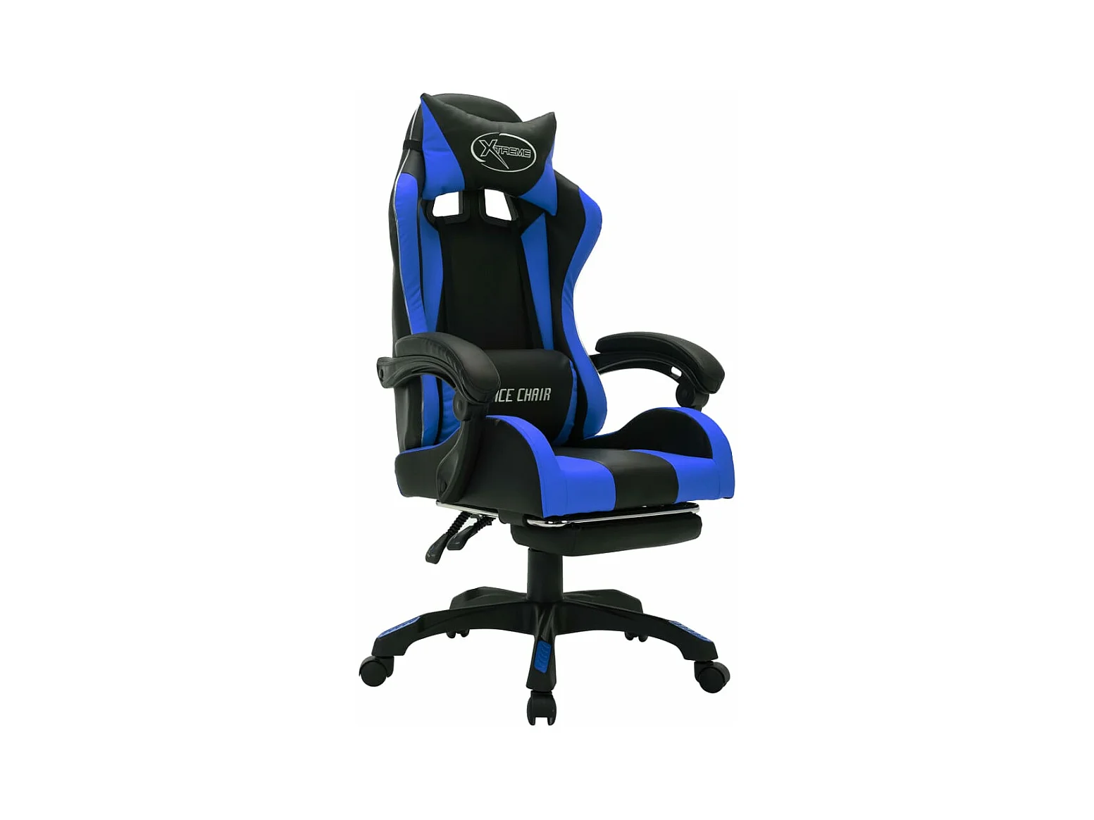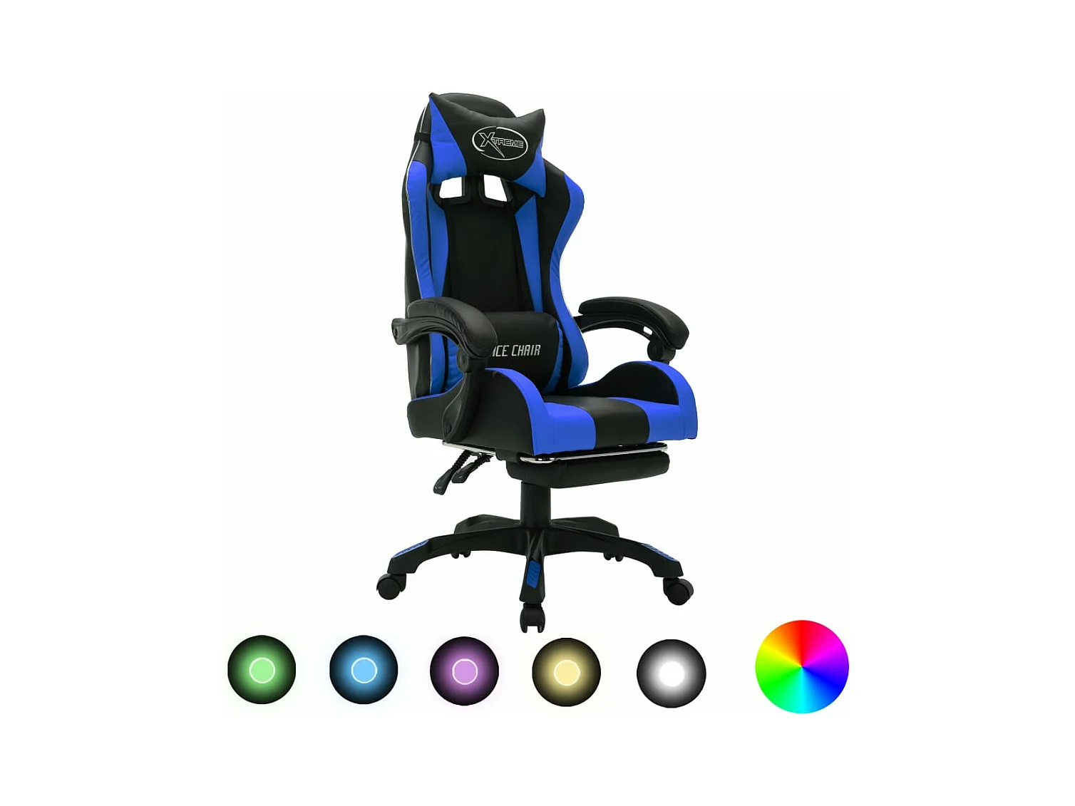 Chaise gamer avec LED RVB Bleu et noir Similicuir REO95105