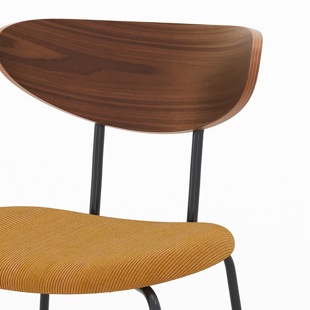 Lot de 2 chaises en velours côtelé jaune moutarde et bois de noyer - Jade