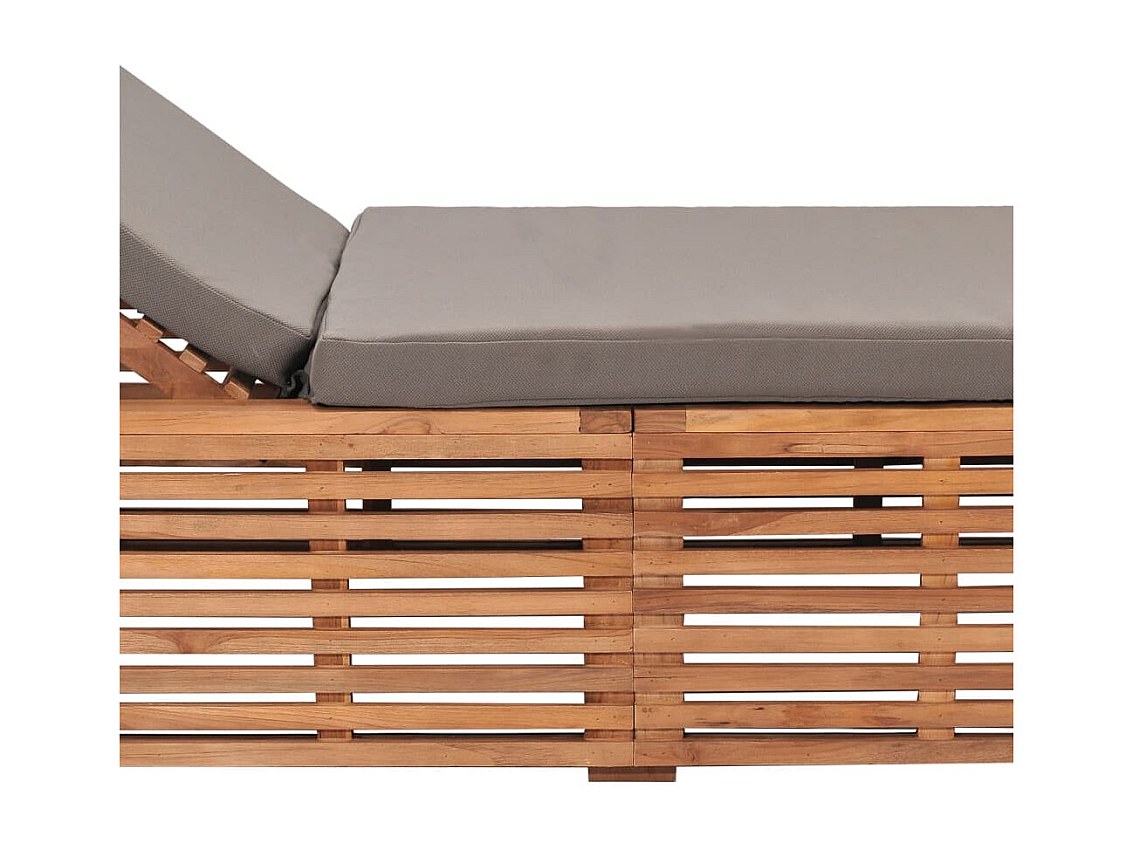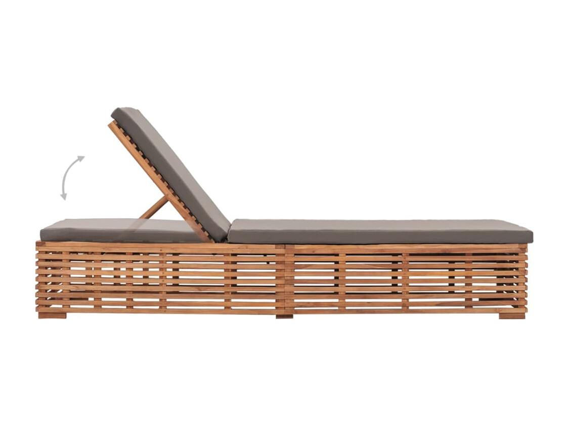 Chaise longue avec coussin gris foncé Bois de teck solide