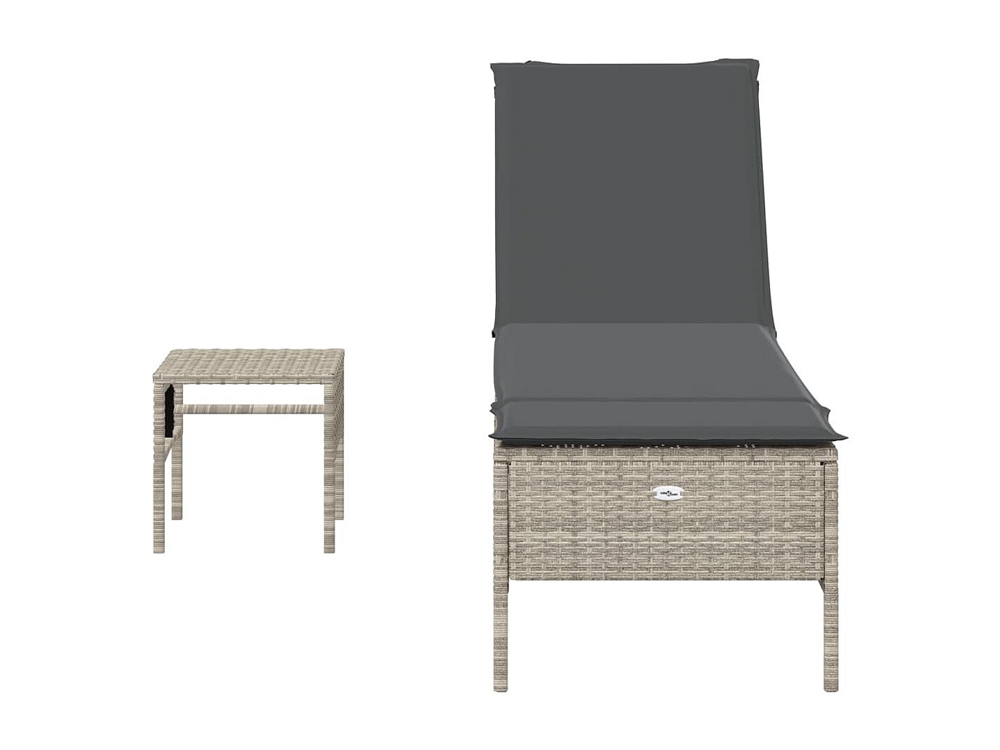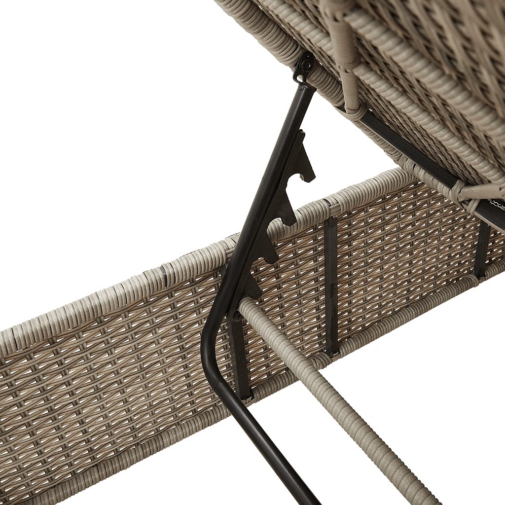 Chaise longue avec table et coussin gris clair résine tressée