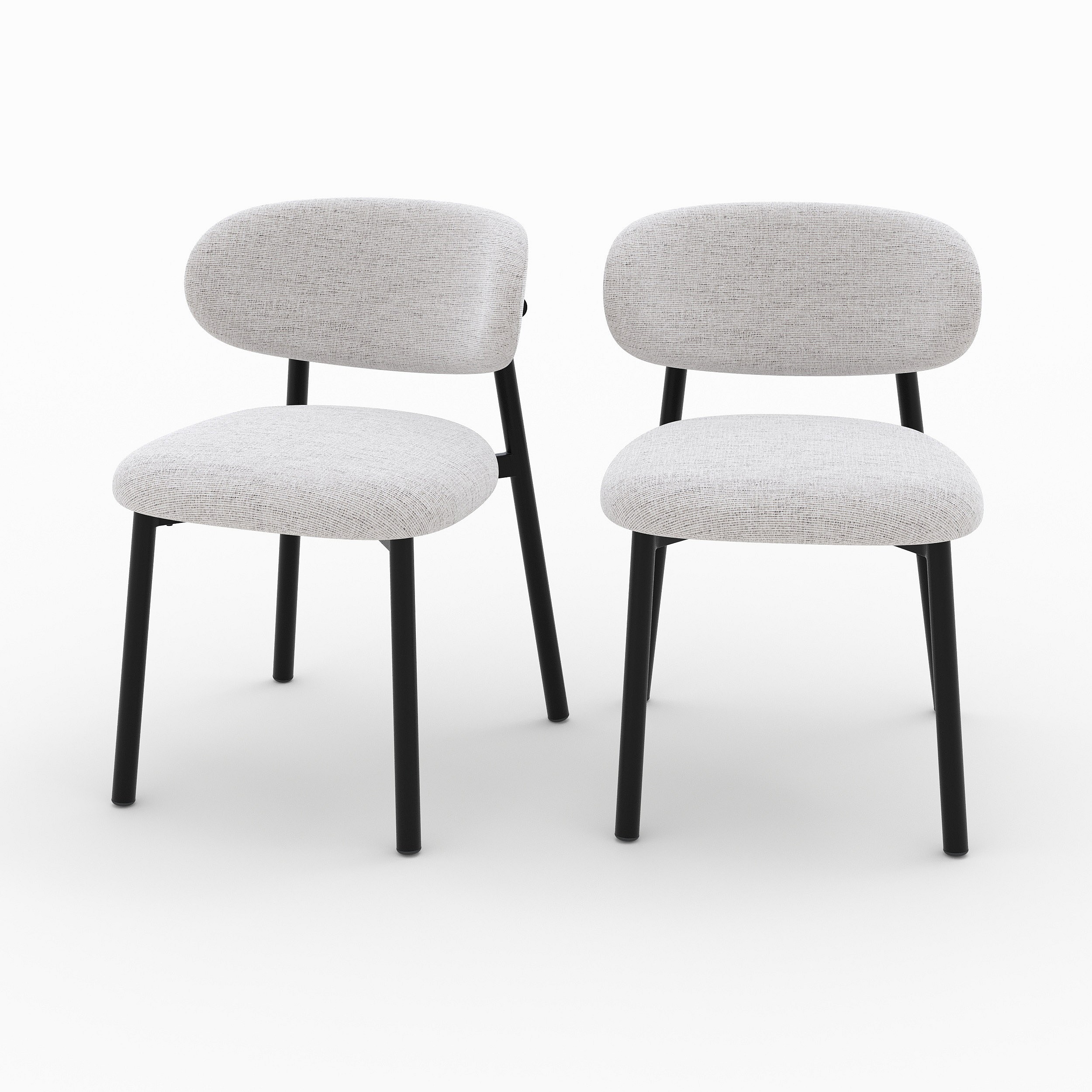 Lot de 2 chaises en tissu gris clair chiné et pieds en métal noir - Nao