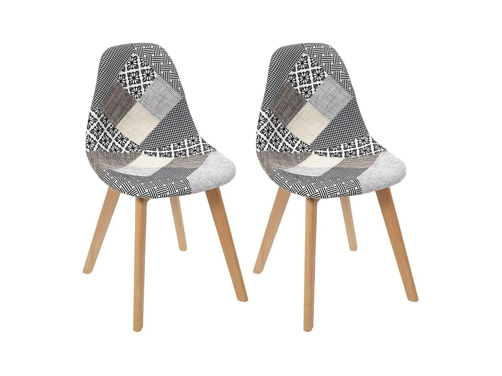 Lot 2 chaises patchwork scandinave tissu pieds bois LAO (gris)
