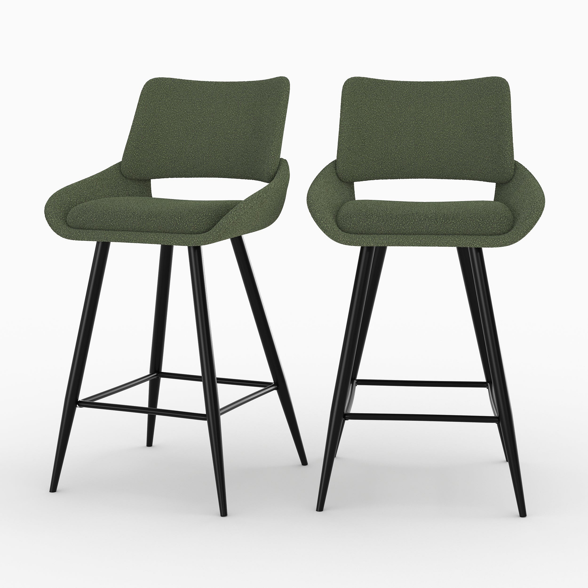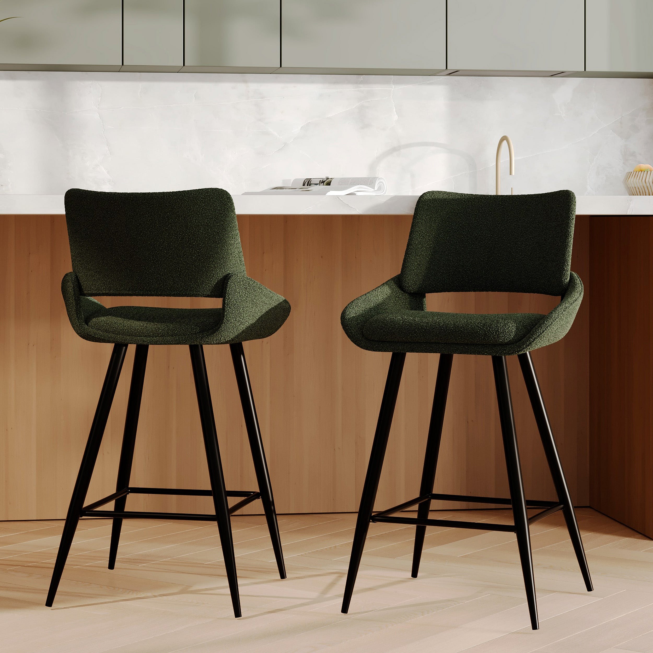 Lot de 2 chaises pour îlot central en tissu bouclé vert kaki 66 cm - Alfy