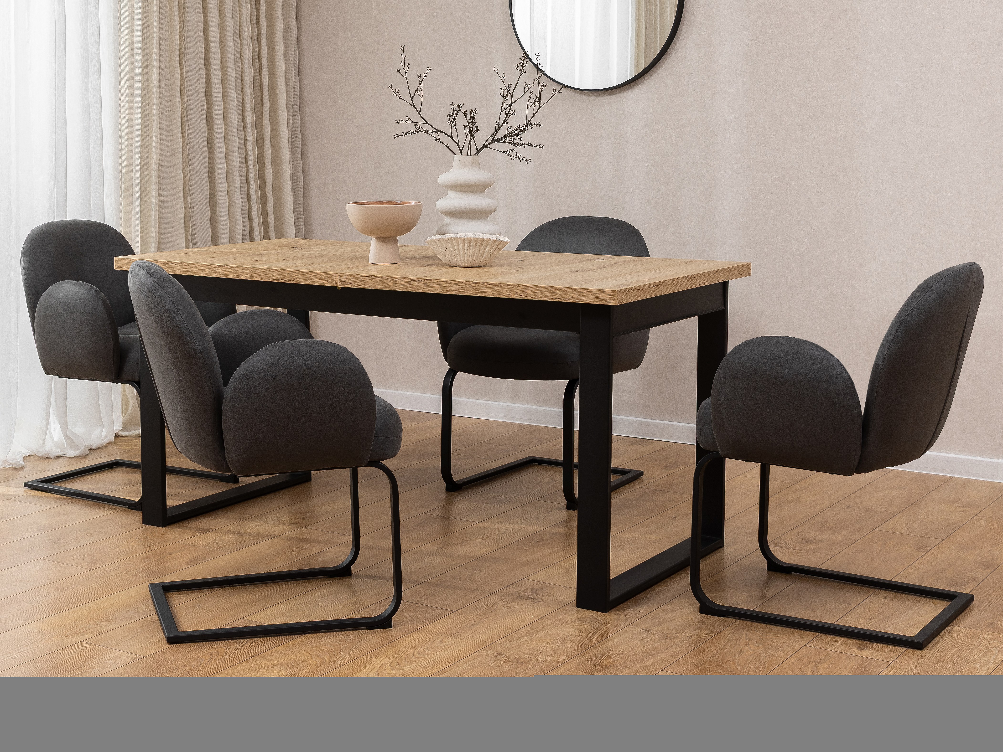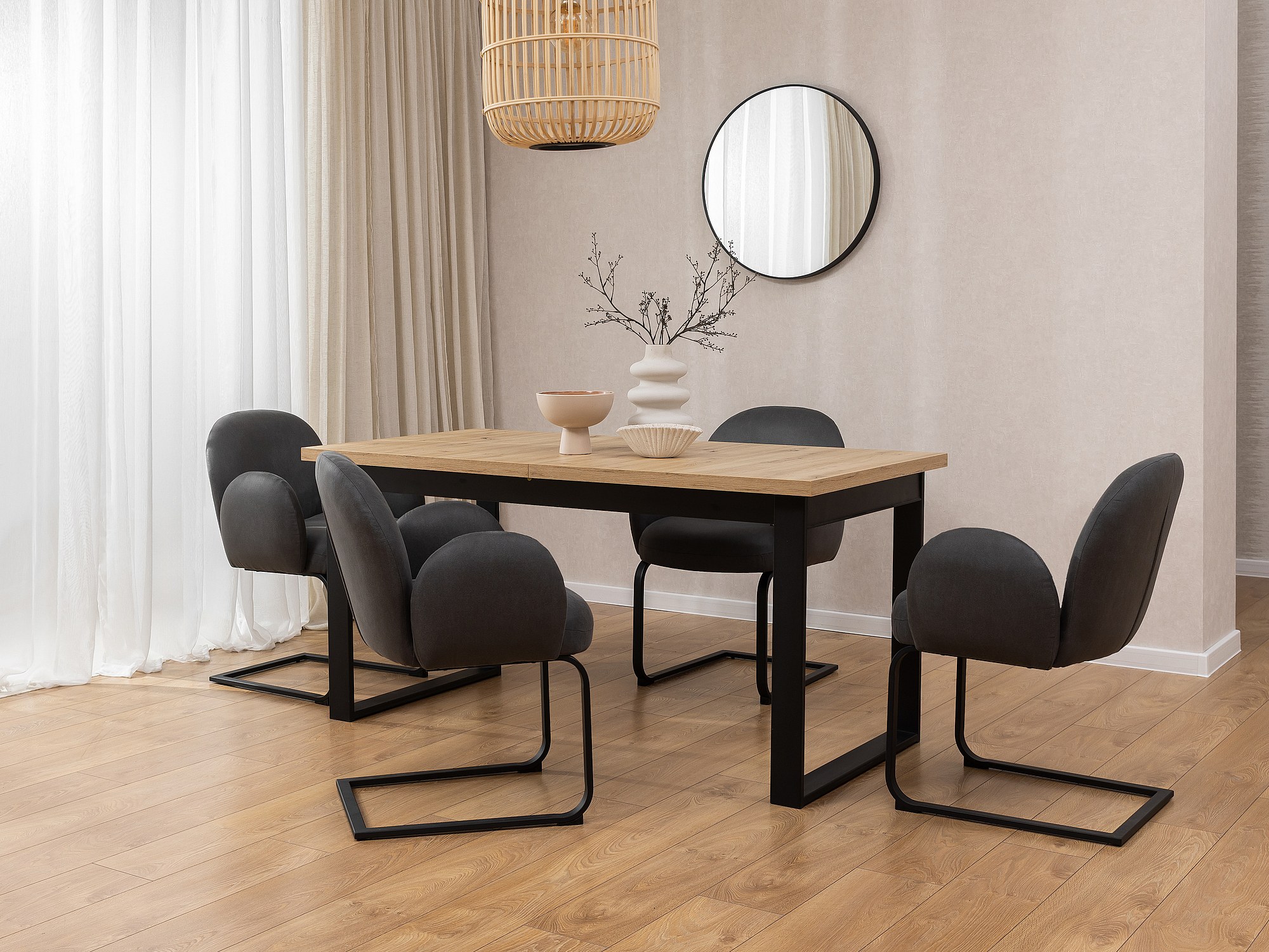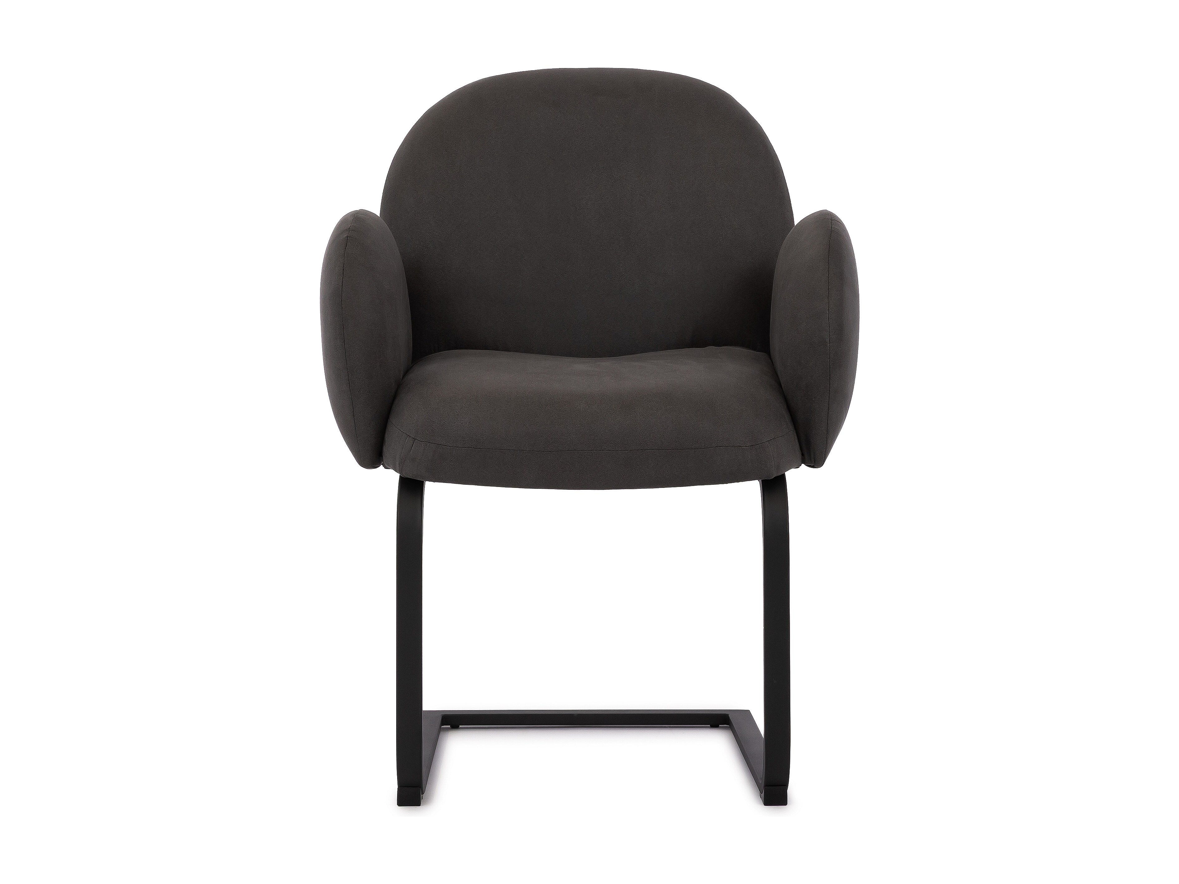 Chaise rembourrée de style Japandi au design arrondi, en microfibre anthracite effet vintage avec une structure en métal noir - Vela
