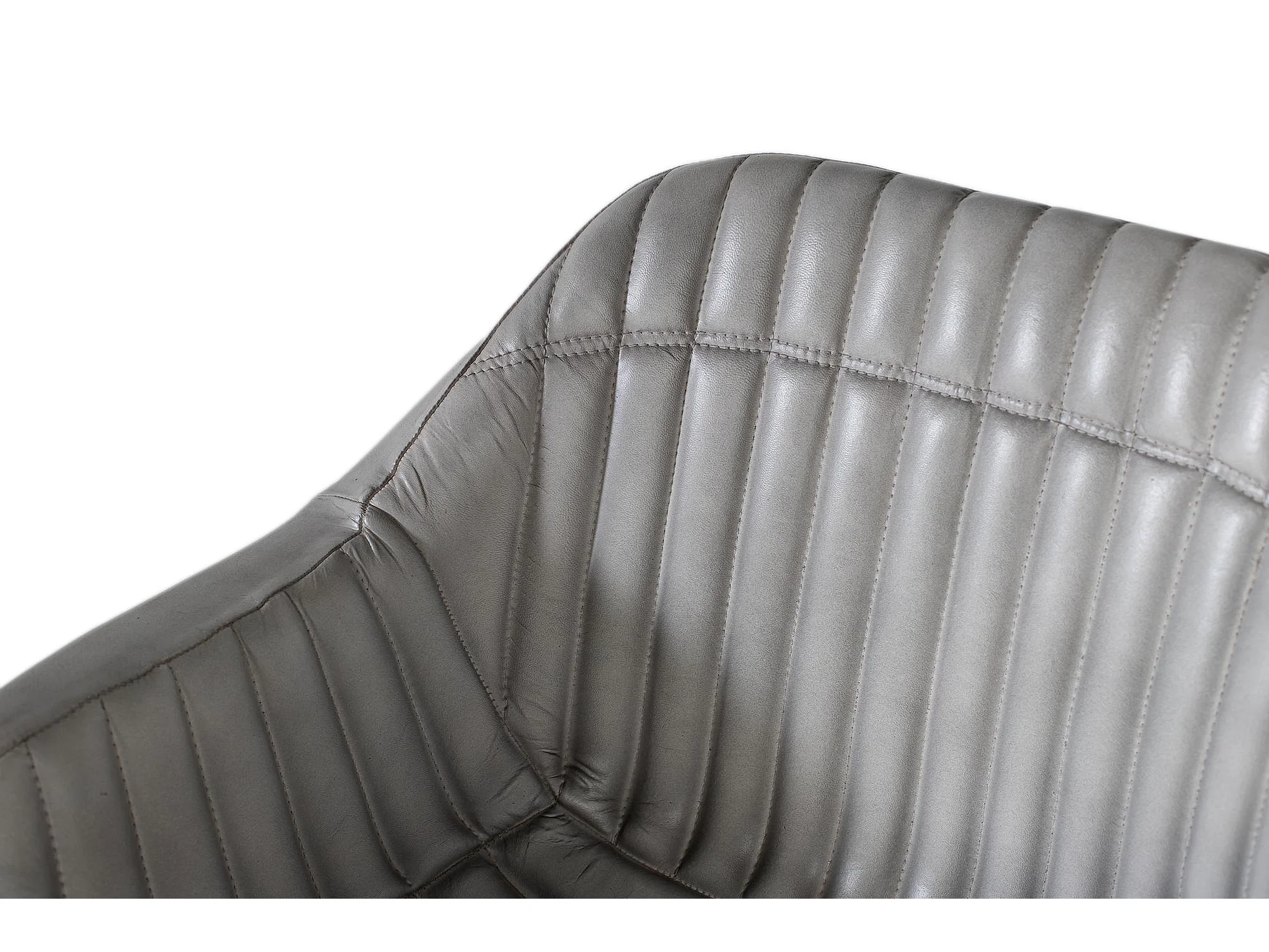 Chaise rembourrée en cuir gris avec dossier rembourré et incliné