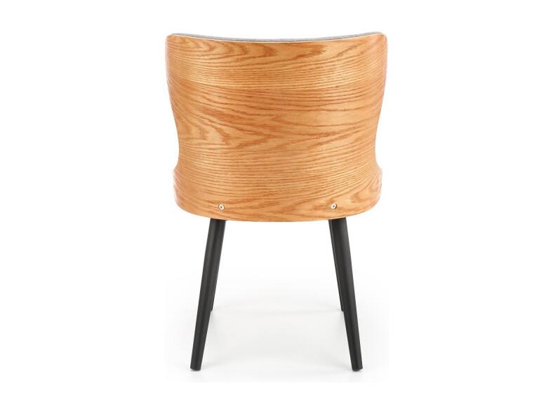 Chaise retro design avec dossier arrondi aspect chêne et assise en tissu gris ARADIA