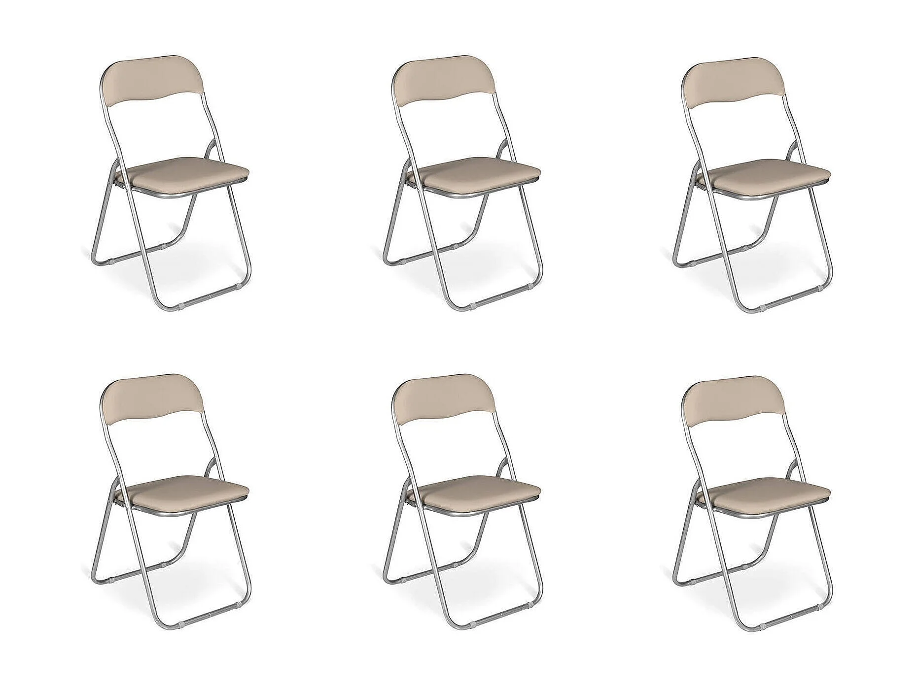 Lot de 6 chaises pliantes Dgraf, Fauteuil gain de place, Chaise invité, Siège de réunion en simili cuir, 43x47h80 cm, Beige