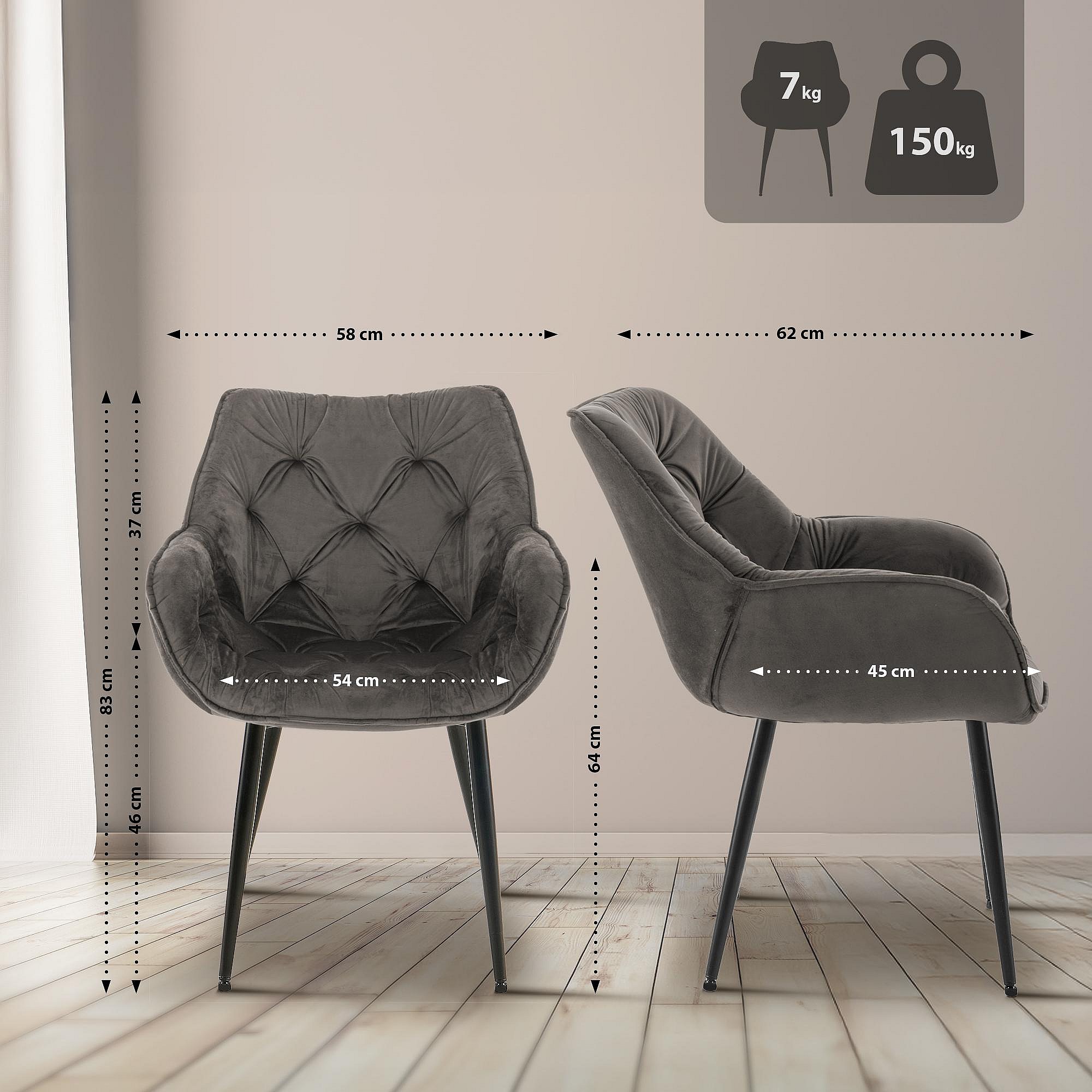 chaises avec accoudoirs - Velours - Anthracite - Tanna