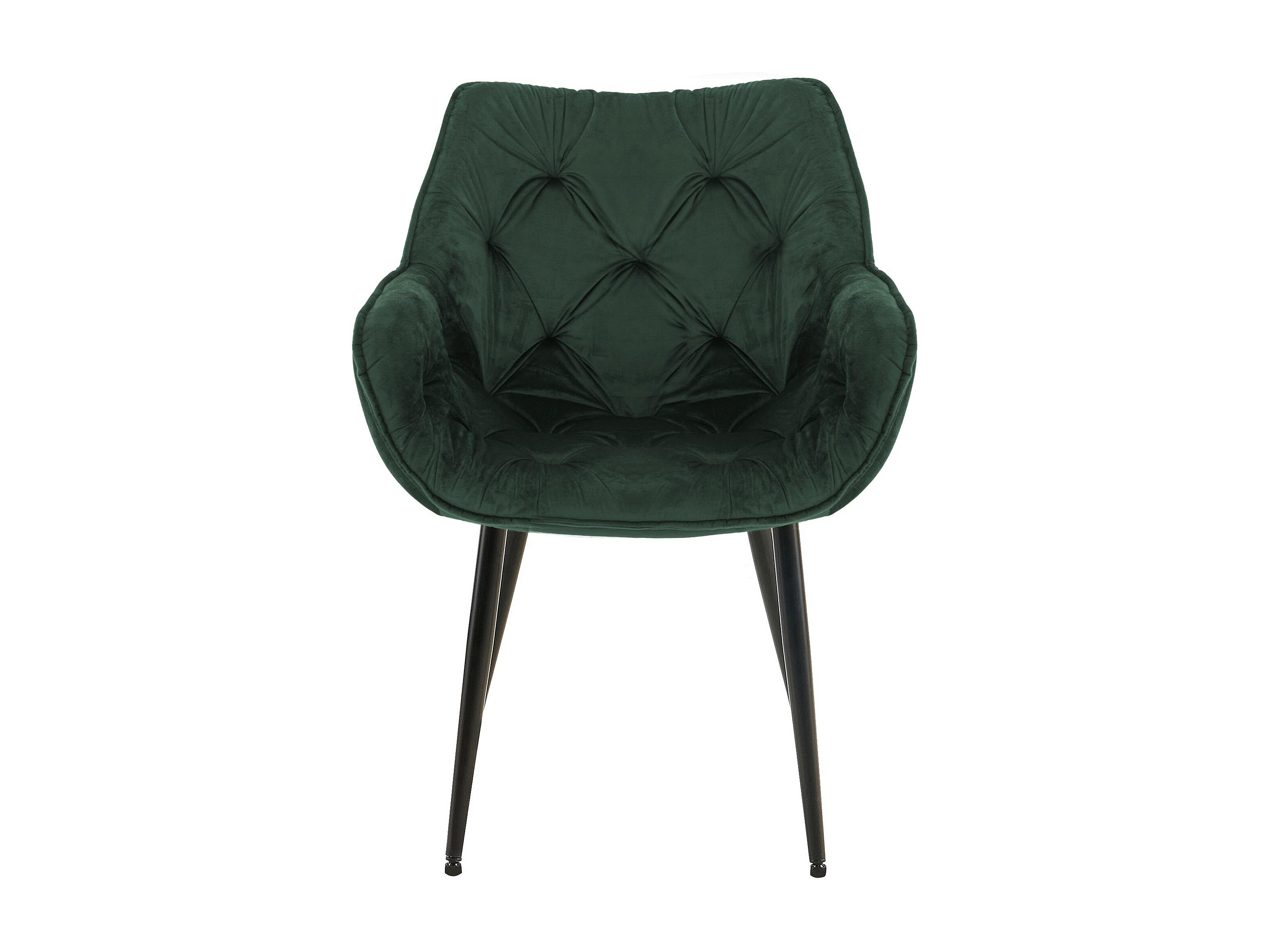 Chaise en velours vert avec dossier arrondi et pieds en métal noir ERIKA