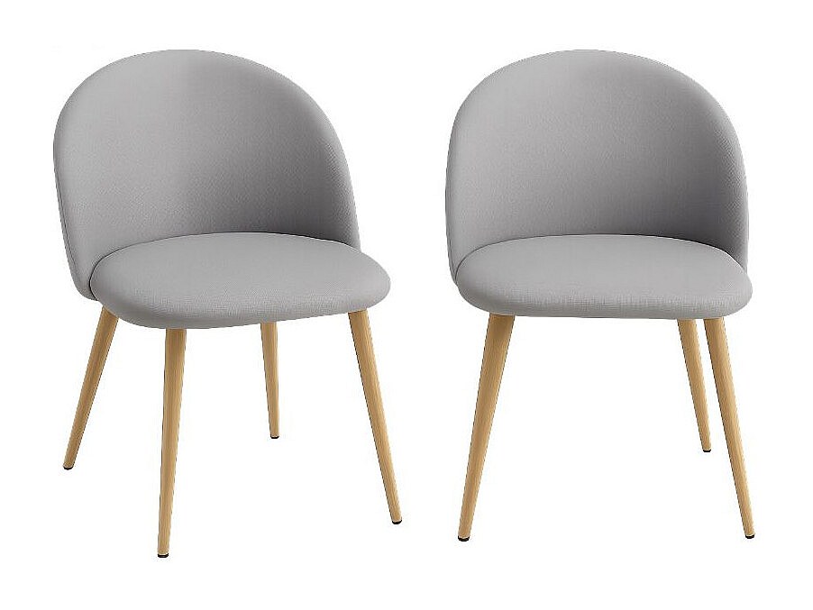 Lot de 2 chaises Kazon - Tissu élégant et pieds métal effet bois clair-Couleur Gris clair