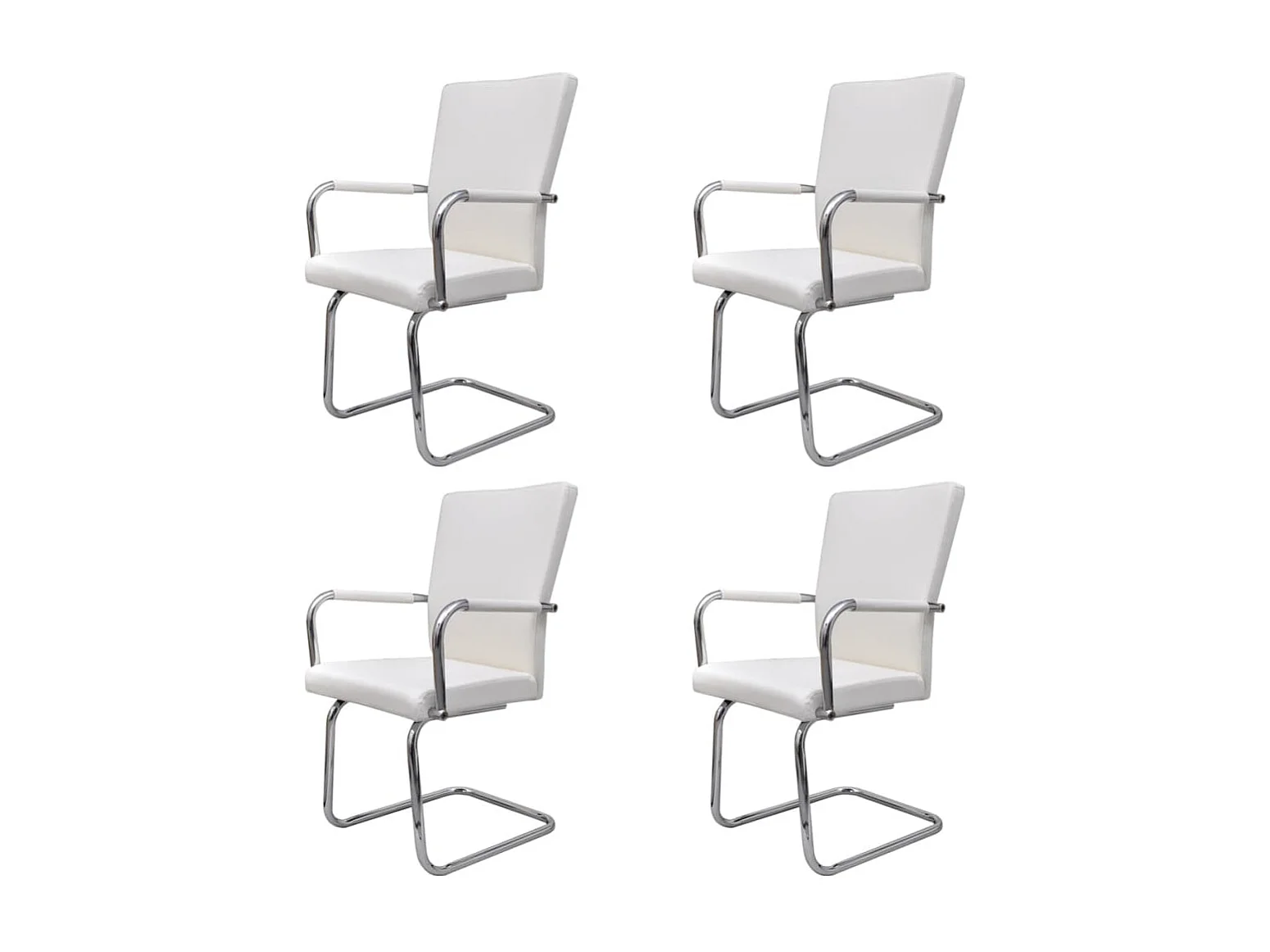 Chaises à manger cantilever lot de 4 blanc similicuir REO92176