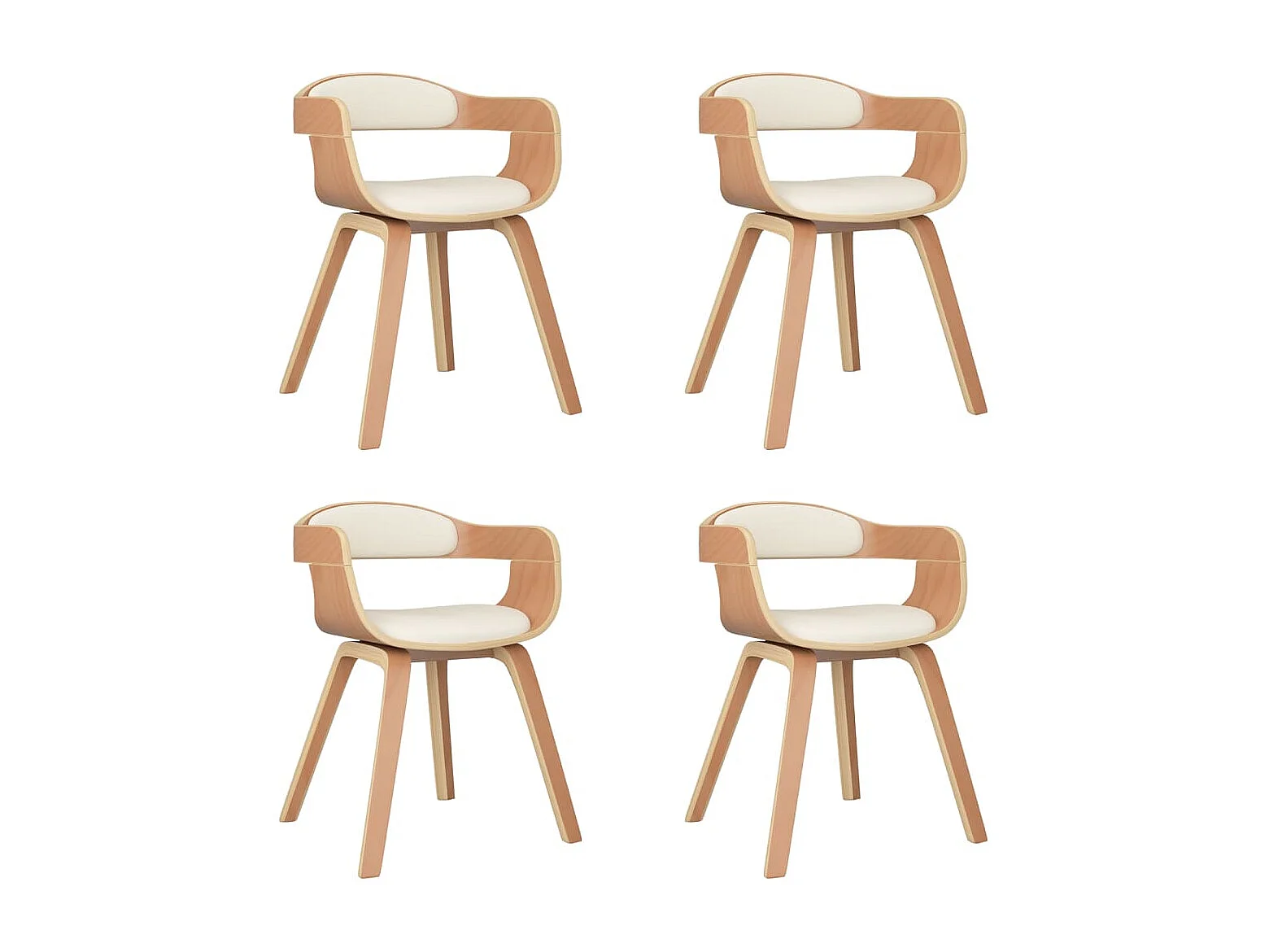 Chaises à manger lot de 4 crème similicuir et bois courbé