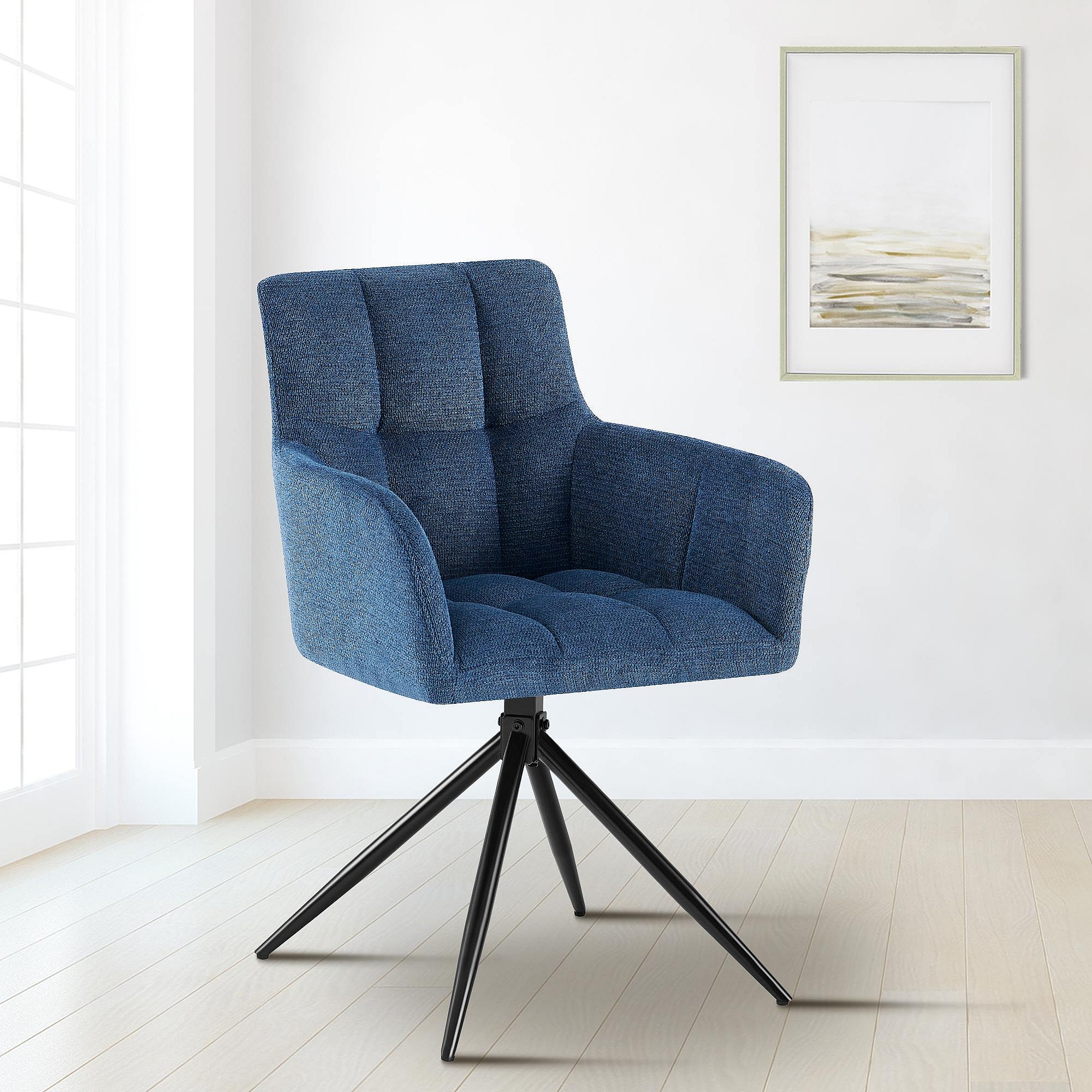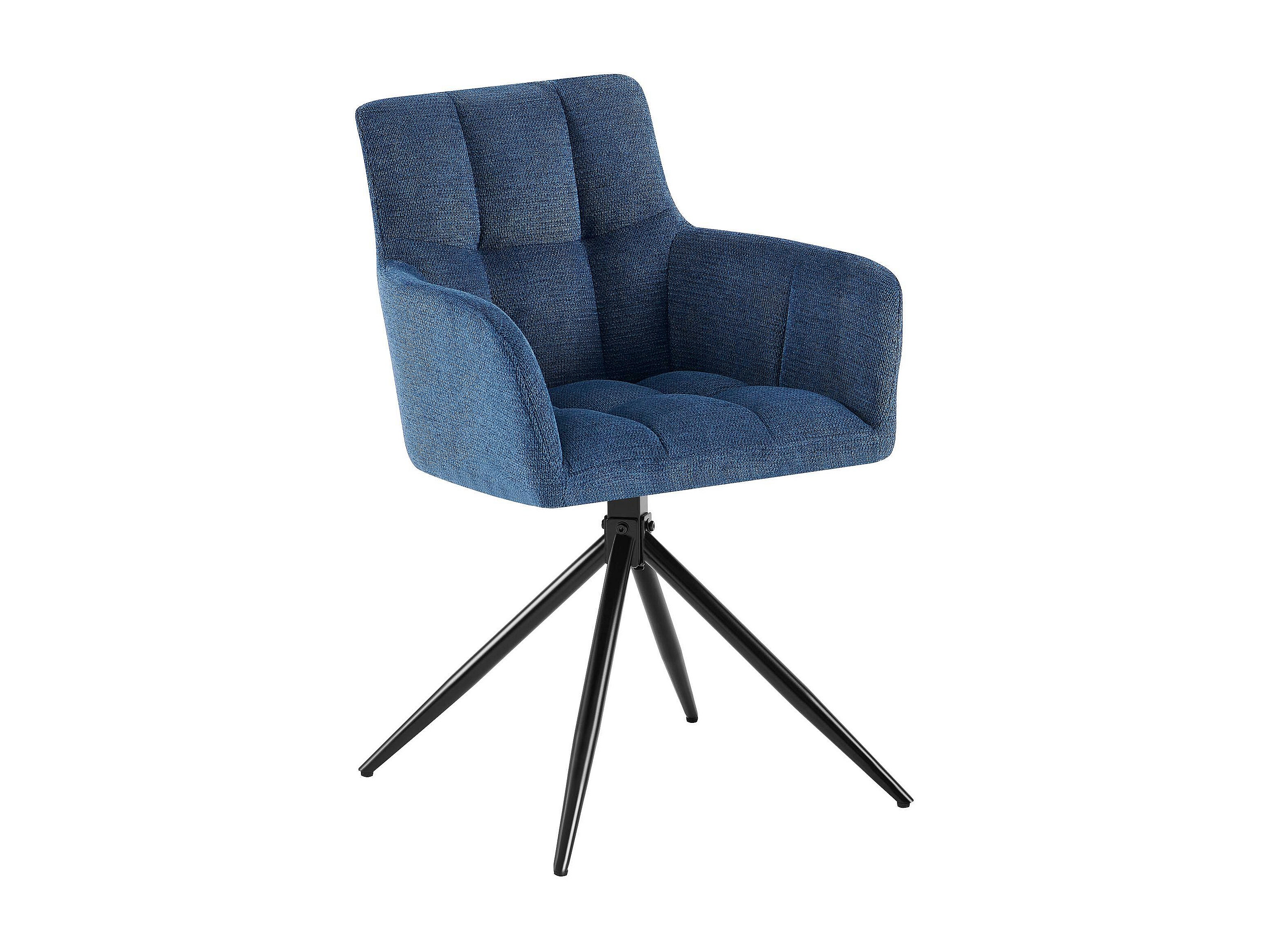 Chaise pivotante à 360º avec accoudoirs tissu bleu et pieds métal noir Larko