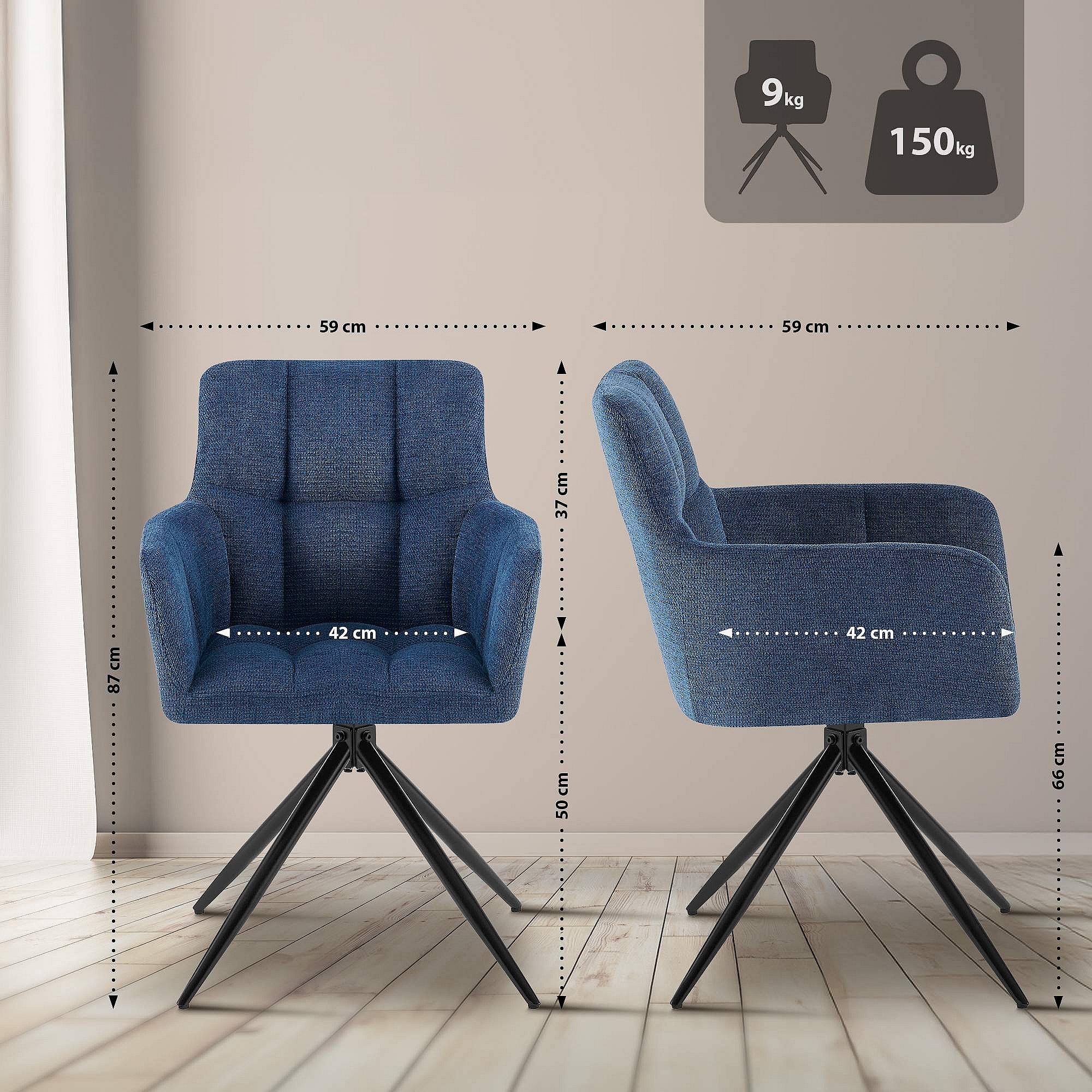 chaises avec accoudoirs - Tissu - Bleu foncé - Jonah