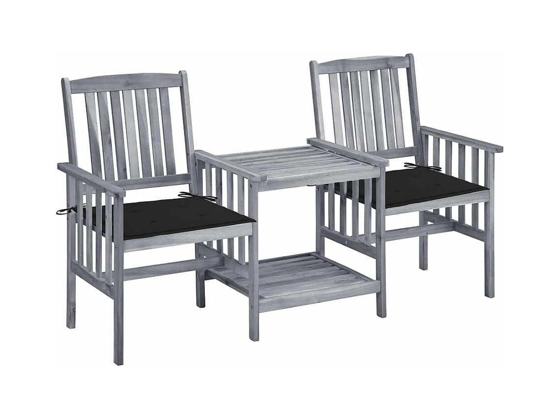 Chaises de jardin avec table à thé et coussins Acacia solide FR55801