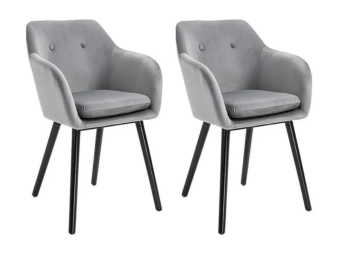 Chaises de salle à manger chaise de cuisine chaises de salon scandinave - Lot de 2 - Pieds effilés Bois Noir - Velours Gris