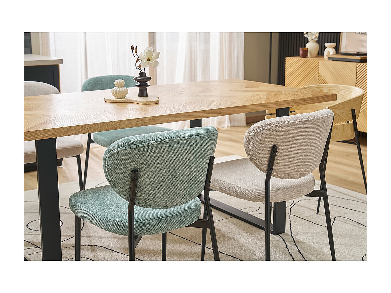 Chaises en tissu effet velours texturé vert céladon et métal noir (lot de 2) BREKA