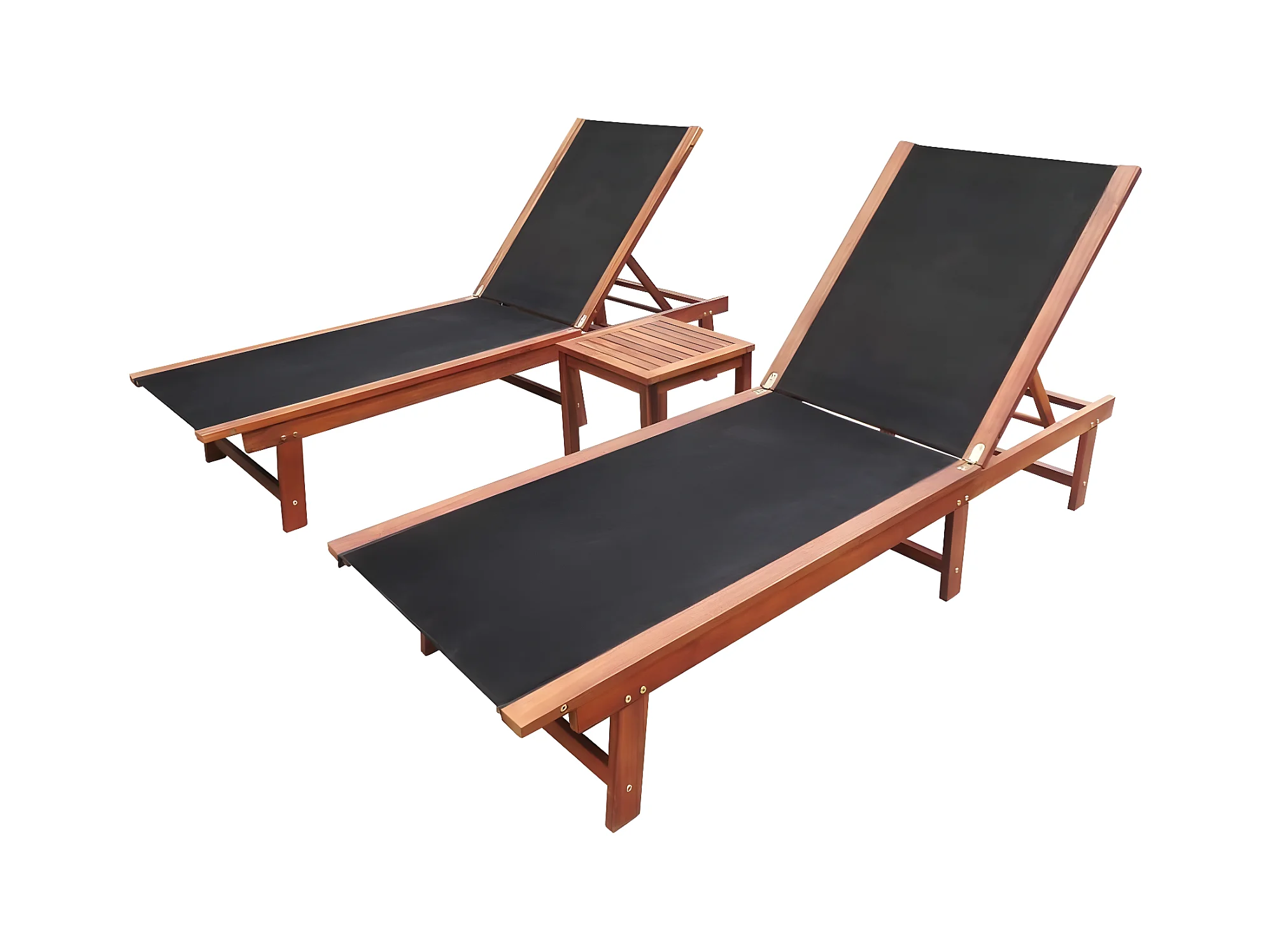 Chaises longues lot de 2 et table Bois d'acacia et textilène
