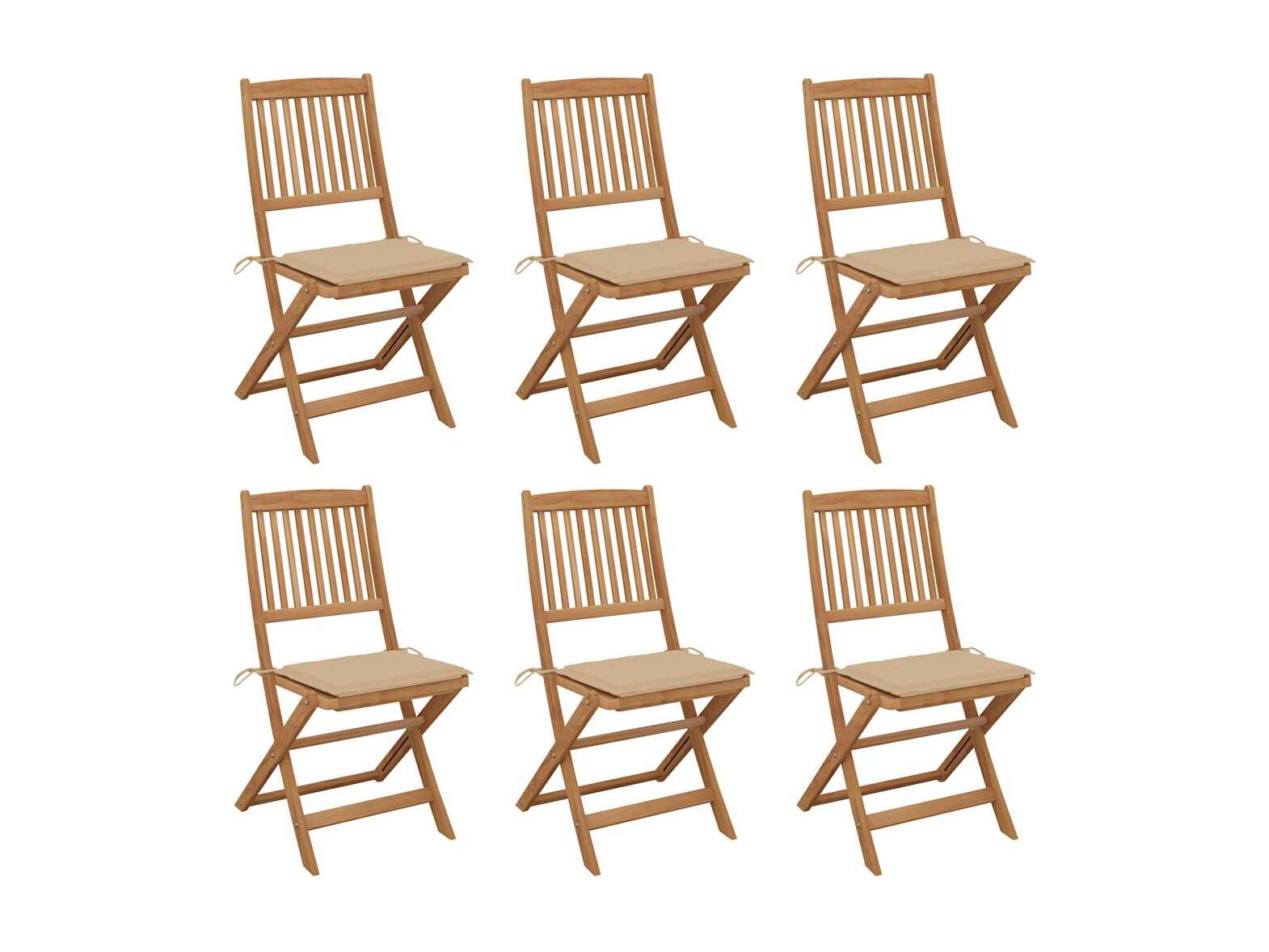 Chaises pliables de jardin lot de 6 avec coussins Bois d'acacia