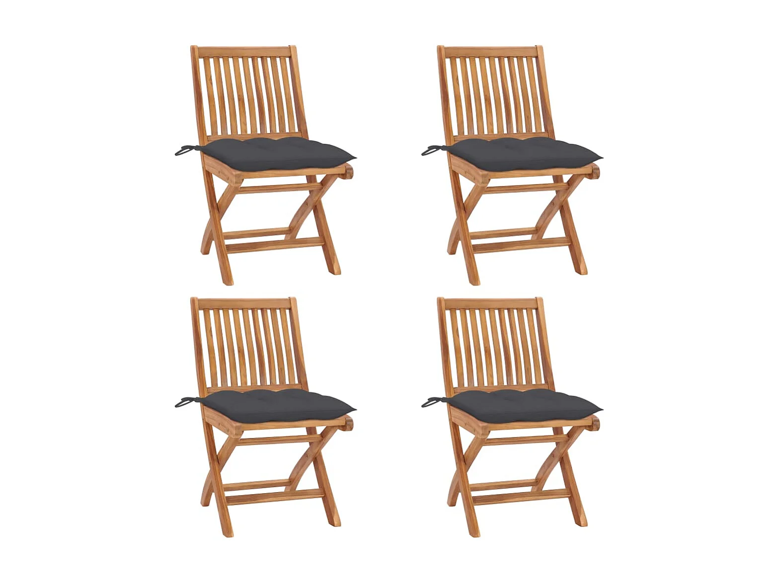 Chaises pliables de jardin avec coussins 4 pcs Teck solide 28