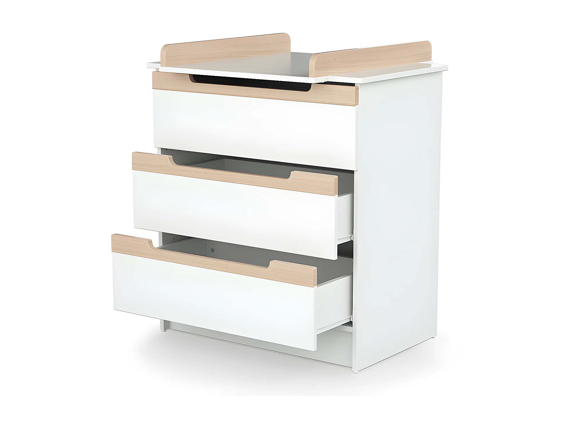 Chambre bébé lit, commode à langer et armoire Blanc et Hêtre Verni